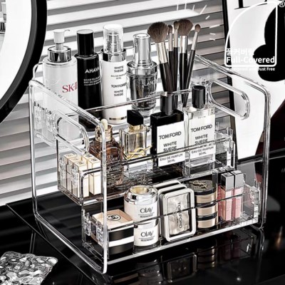 풀커버링 투명 손잡이 3단 화장품 트레이 향수 진열대 조립형 선반
