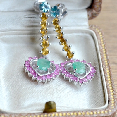 주요 사양 : 정은 (Sterling Silver 92.5%) + 화이트 골드 도금, 에메랄드, 루비, 시트린, 토파즈