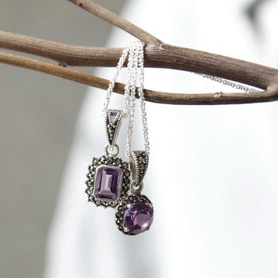 귀금속,보석류-등급 : 스터링 실버 925, 자수정, 마카사이트