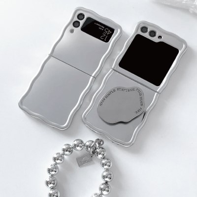 당일발송)크롬 실버 웨이브 물결 케이스 스트랩 미러 그립톡