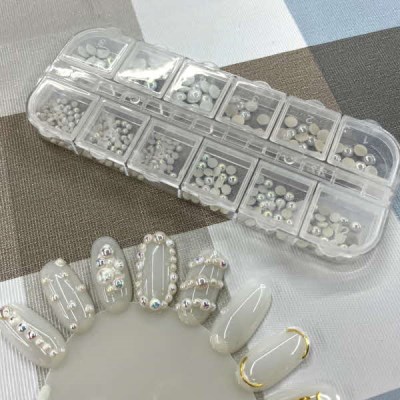 네일파츠 레진아트 네일아트 꾸미기 파츠 세트 화이트펄 네일큐빅