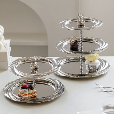 러블리먼스 스텐 2단 디저트 트레이 접시 곰돌이 모양 손잡이