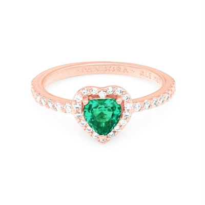 판도라 반지 엘리베이티드 하트 그린 로즈 188421C03