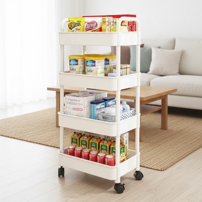 품명 및 모델명 : 이동식 4단 트롤리 대형 트레이 선반 간식보관 기저귀정리