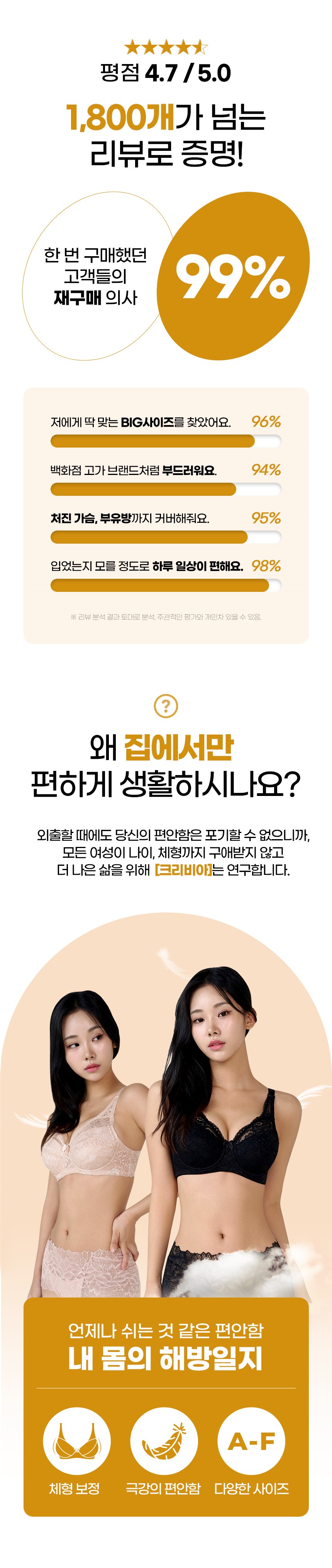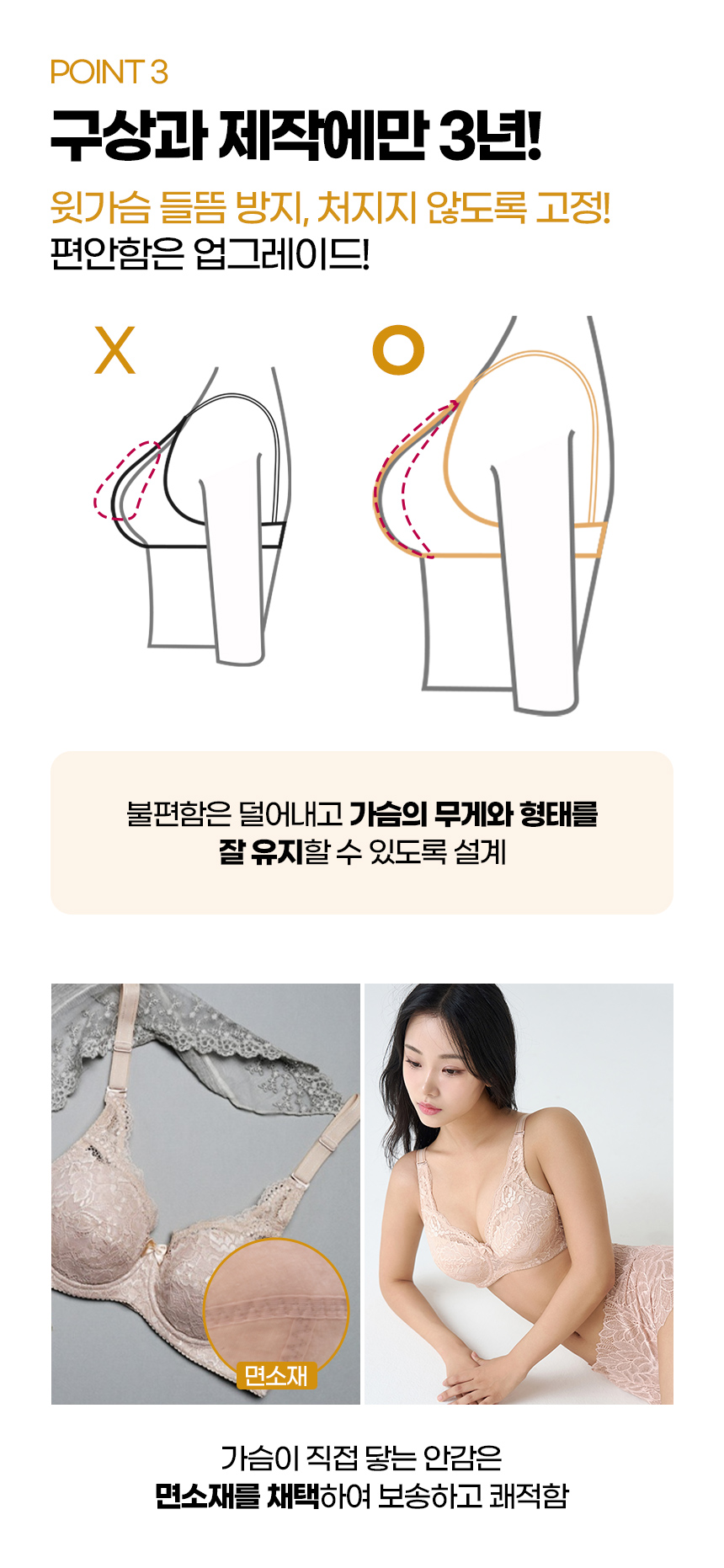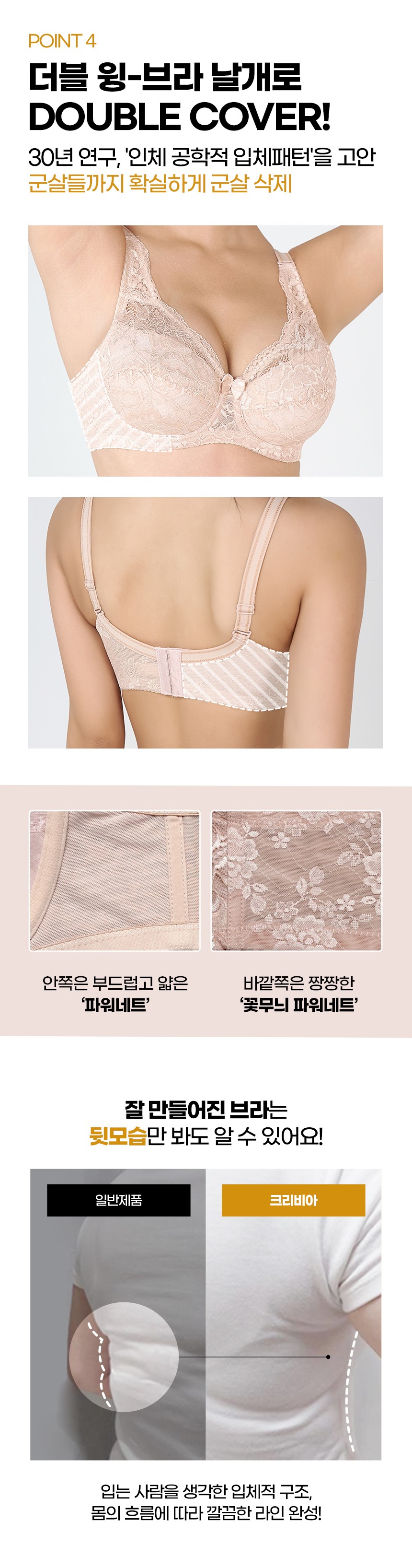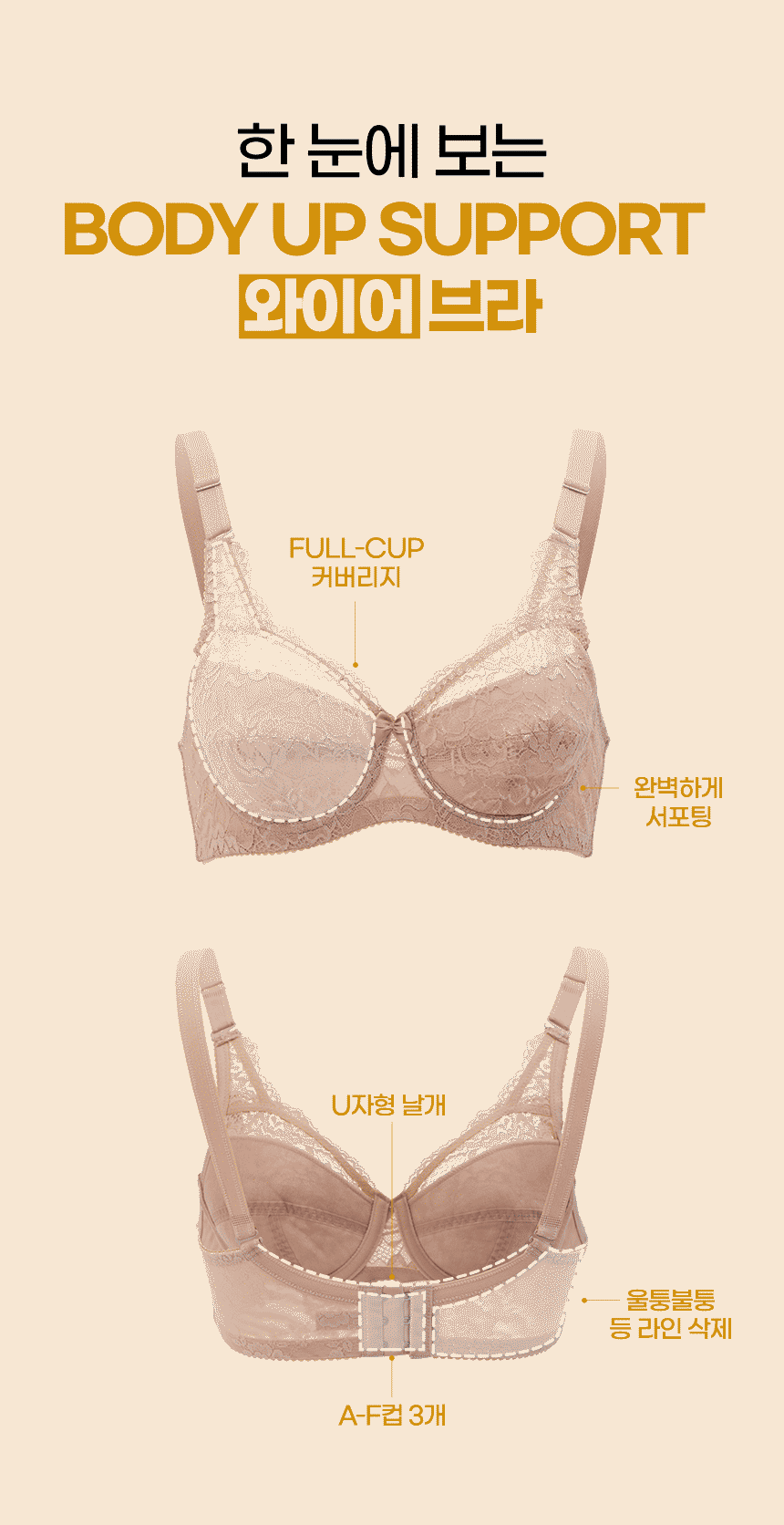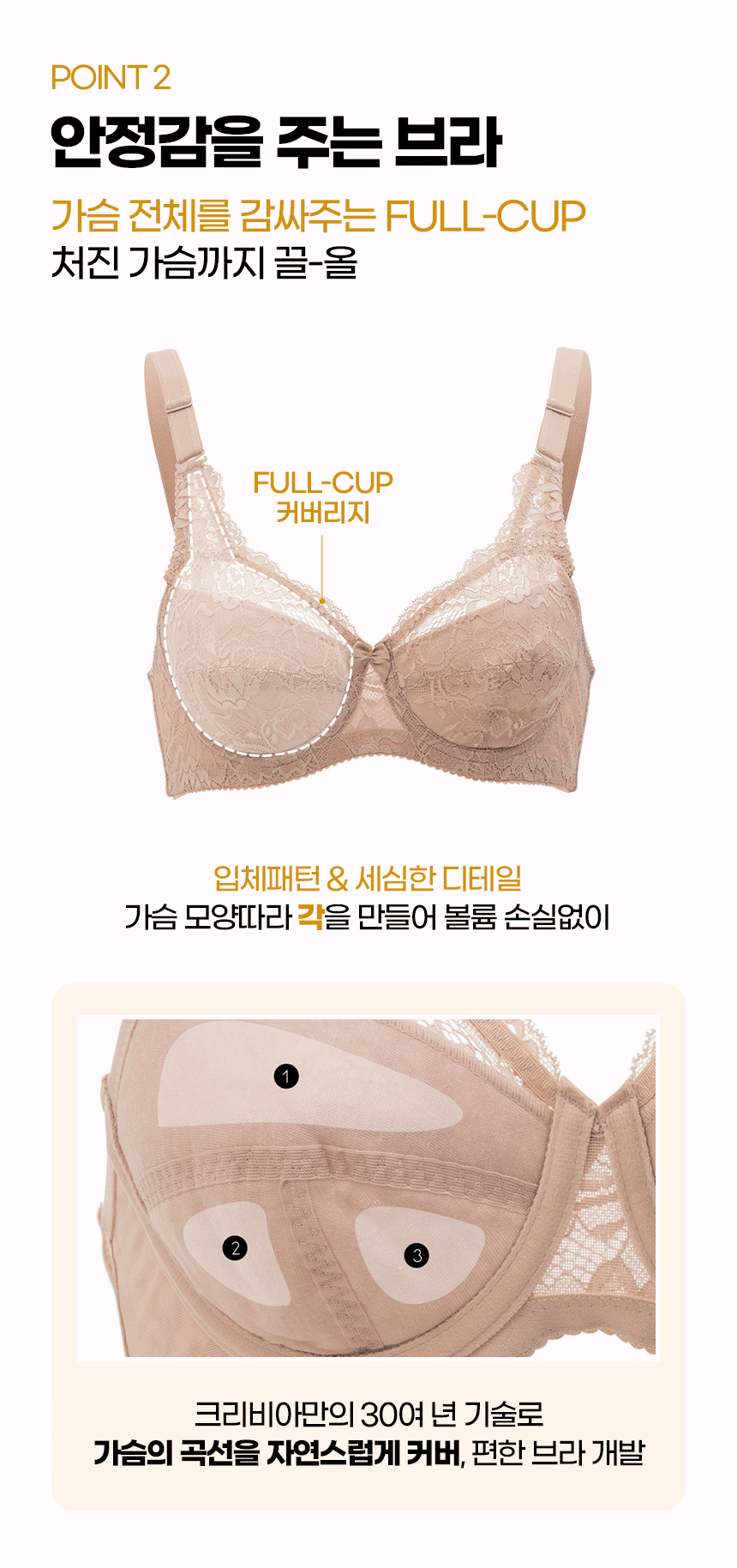 고급스럽고 우아한 ‘올오버’ 레이스 / Full-Cup 스타일 / 광폭 날개로 확실한 ‘보정 효과’