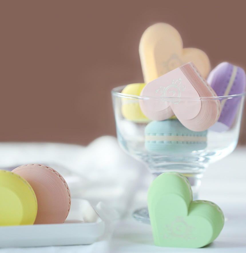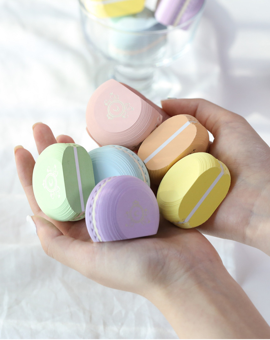 1. DESIGN 파스텔 마카롱 색감과 수작업한 장인 정신이 돋보이는 마카롱 모형 메모지