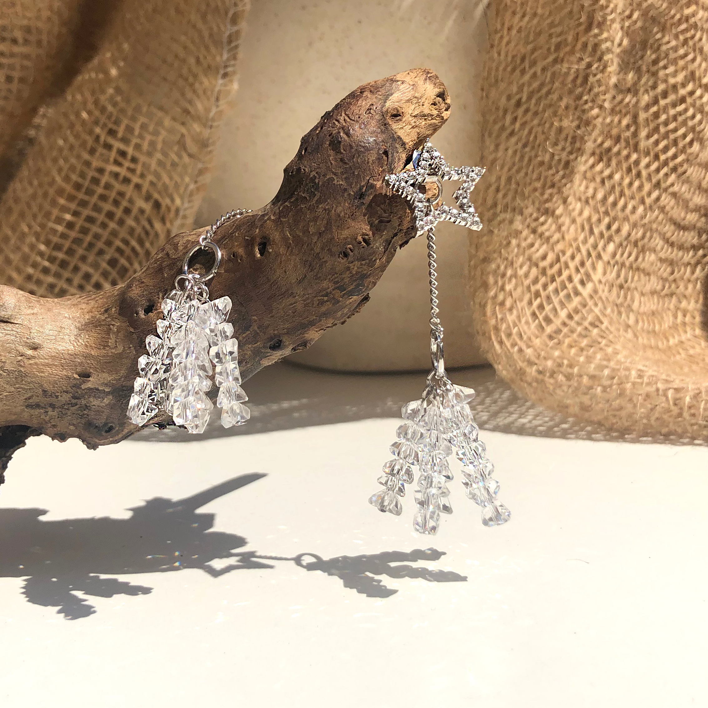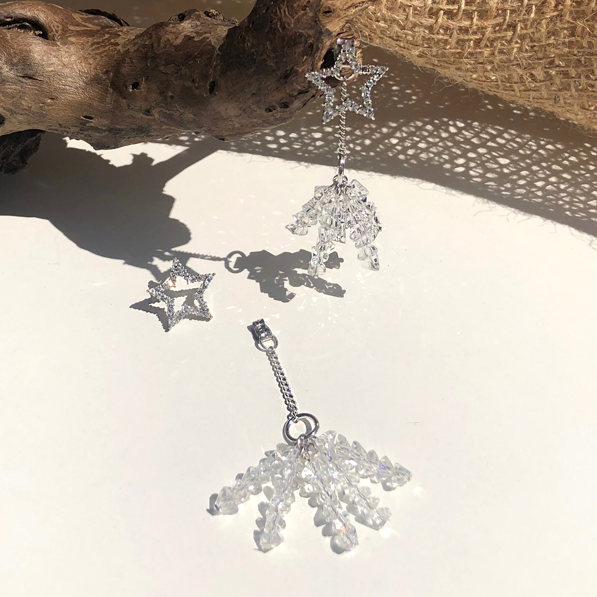 SENSOO 센수 스팅 귀걸이 별 모양의 큐빅 팬던트에 고급스러운 큐빅을 여러 줄로 엮어 디자인한 제품입니다. 투웨이로도 사용 가능해 데일리 아이템은 물론 포인트 악세사리로도 추천드립니다.