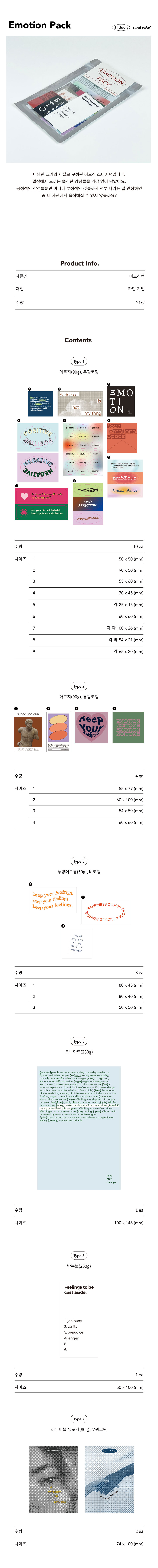 다양한 크기와 재질로 구성된 이모션 스티커팩입니다.
