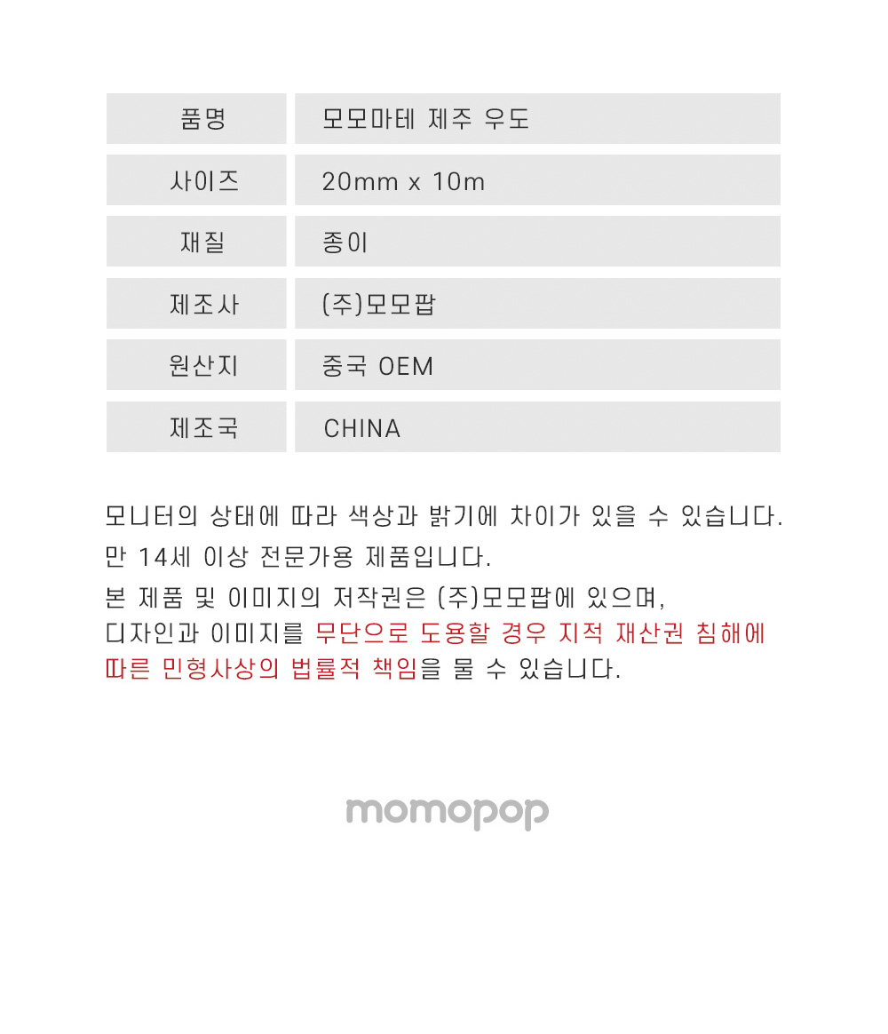 사이즈: 폭 20mm X 길이 10m / 재질: 종이