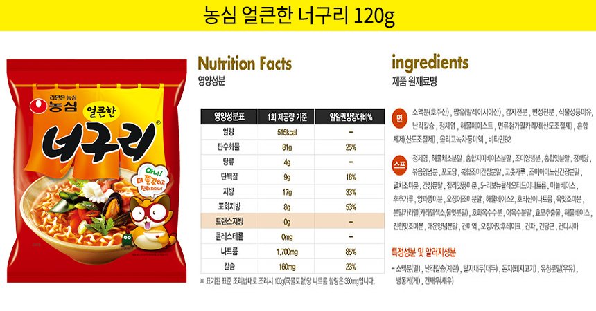 [농심] 얼큰한맛 너구리 120g X 5입