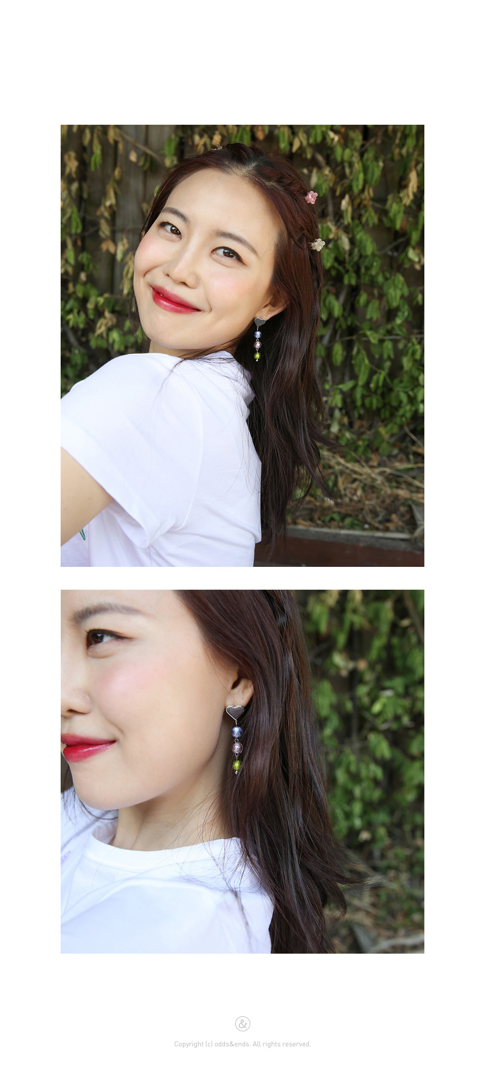 심플한 하트 디자인에 크기와 색으로 포인트를 준 이어링입니다.