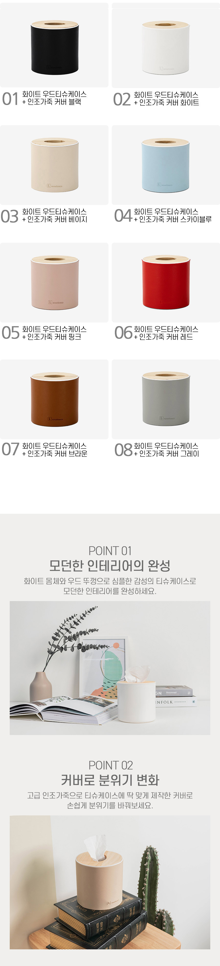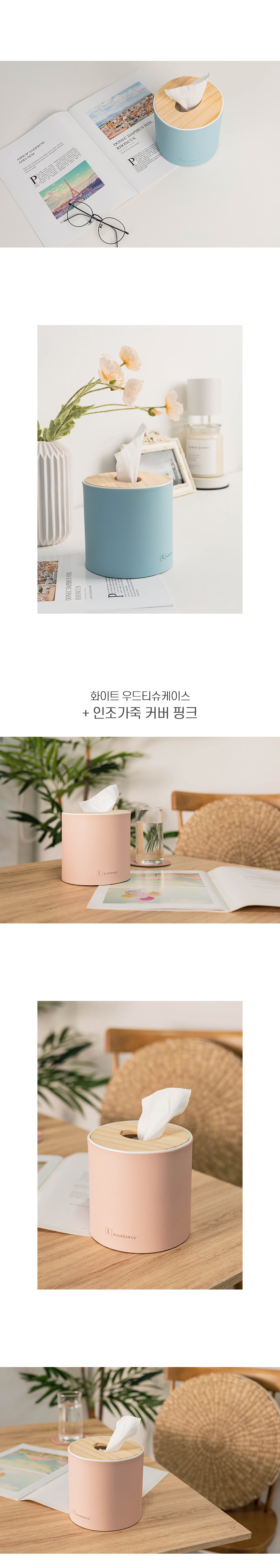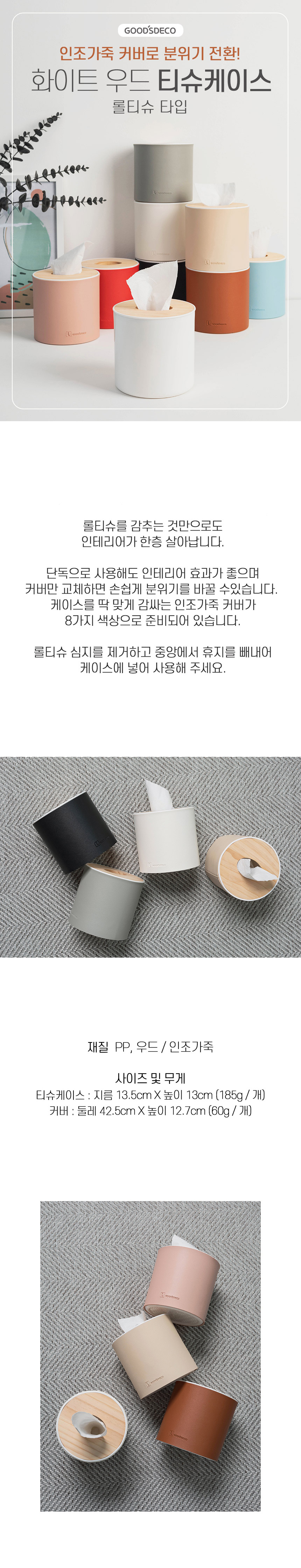 * 국산 가죽커버 우드 티슈케이스 롤 (8colors)