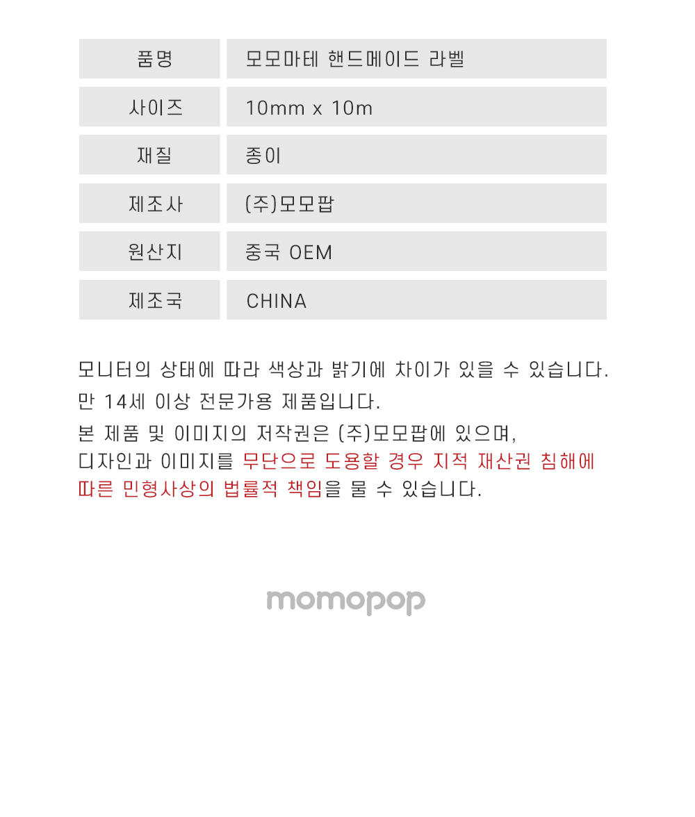 모모마테 핸드메이드 라벨 마스킹 테이프