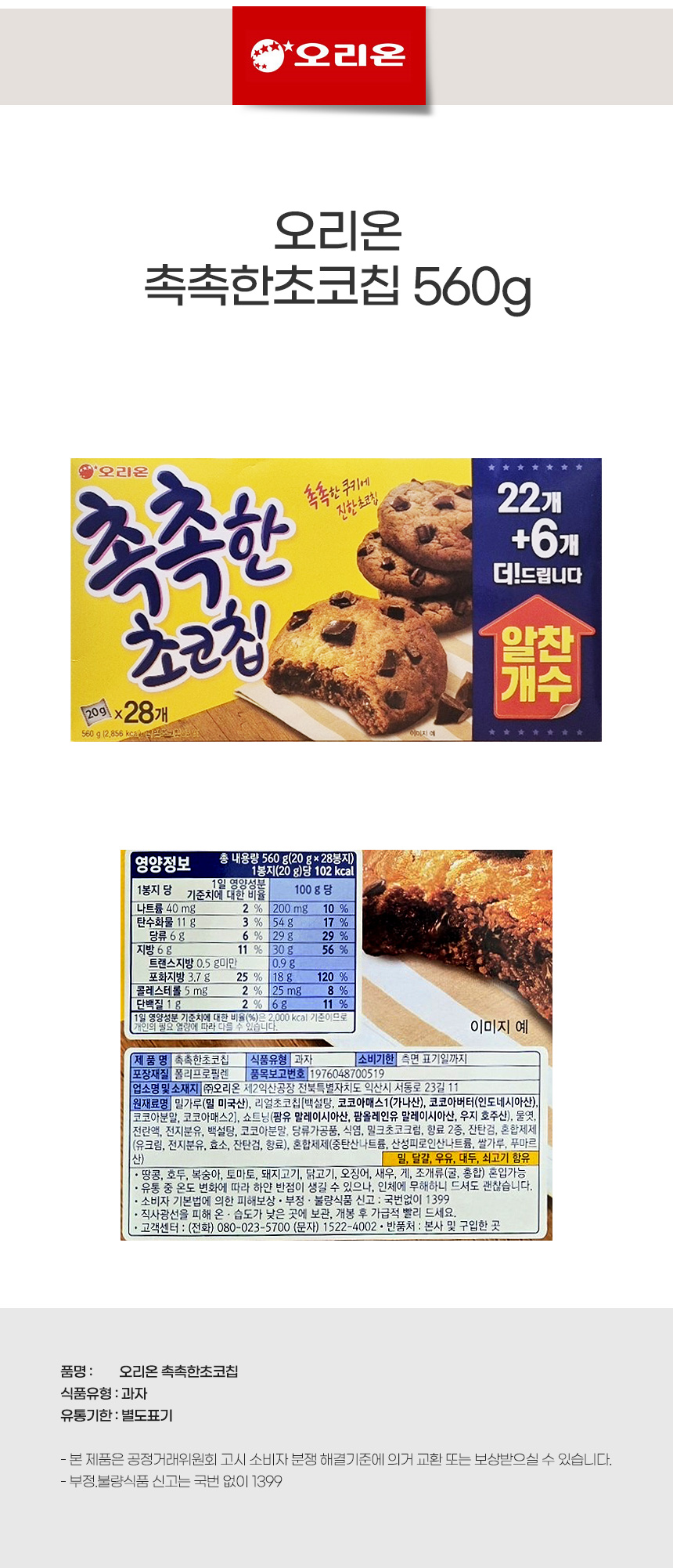 해당 상품은 [오리온 촉촉한초코칩 560g (560g) ] 구성의 상품입니다.