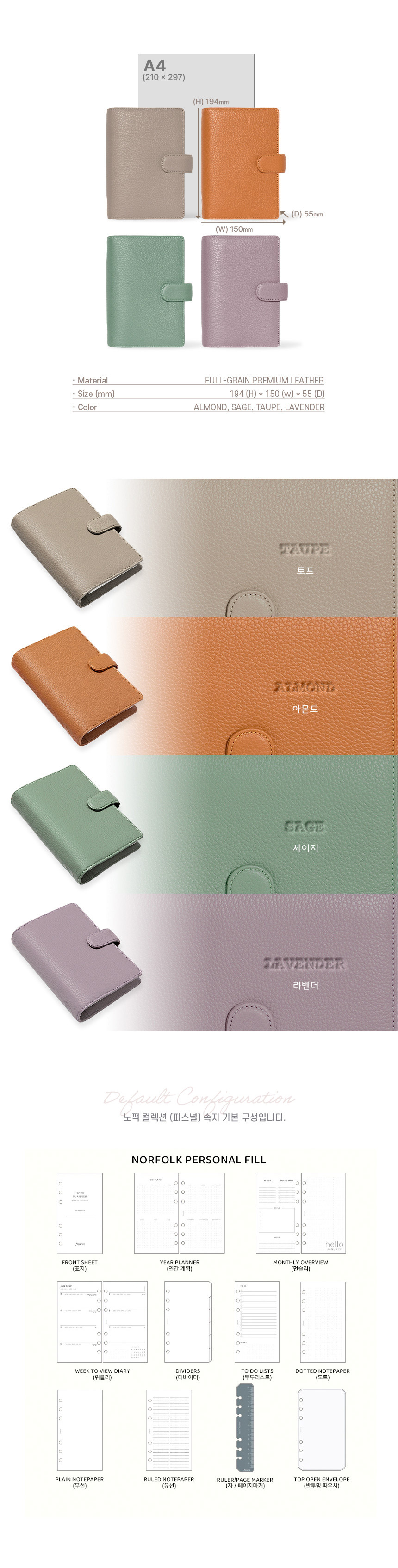 파일로팩스 노퍽 퍼스널 오거나이저 Filofax Norfolk Personal Organiser A6 6공 다이어리