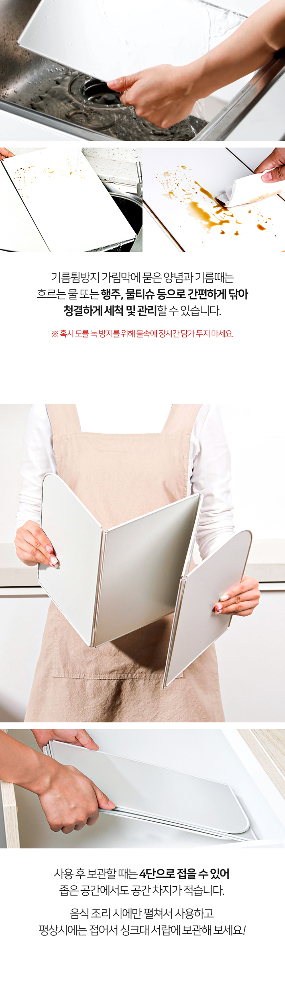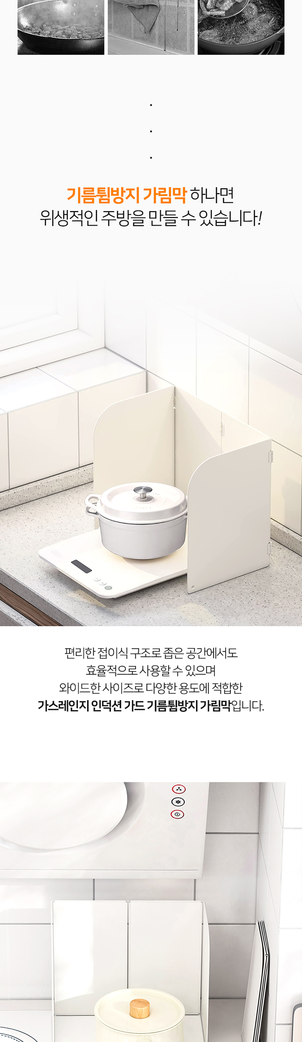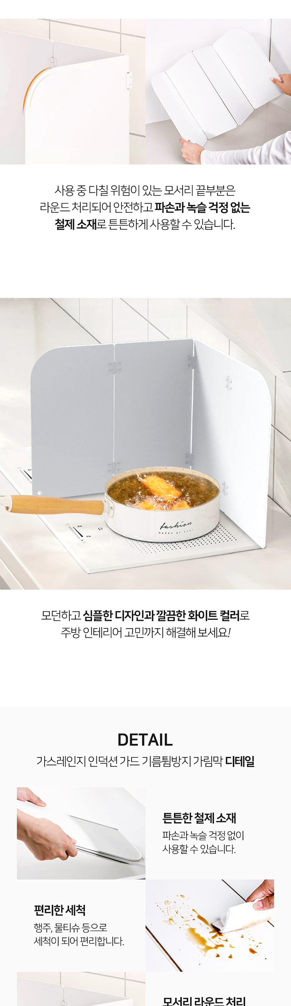 철제 가림막으로 주방 벽면에 음식물, 기름이 튀는 것을 방지해 보세요