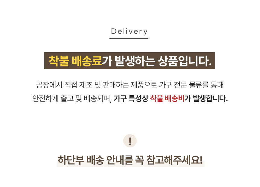 ★ 본 상품은 착불배송으로 출고 되는 제품으로 쇼핑몰에 무료배송으로 나와도 착불배송으로 진행되는 가구 제품입니다 ★ 해피콜은 주문확인후 1~2일이내 해피콜 문자나 유선으로 연락드리고 있습니다. 안심번호로는 확인이 어려우니 일반 핸드폰번호 기재 해주세요 ★ 제품에 관한 상담,출고일,제품 반품등 자세한 상담을 원하시면 문자나 유선으로 연락주시면 확인후 빠른 상담 가능합니다 010-5750-2219