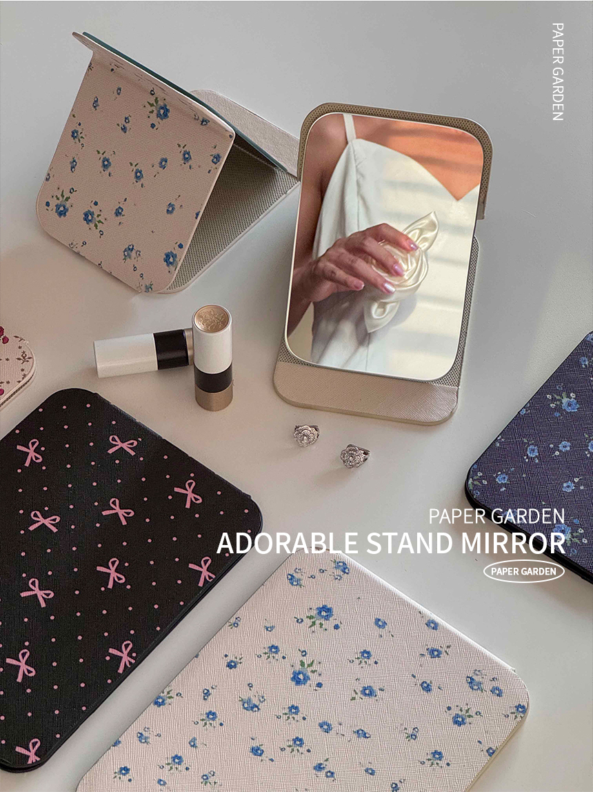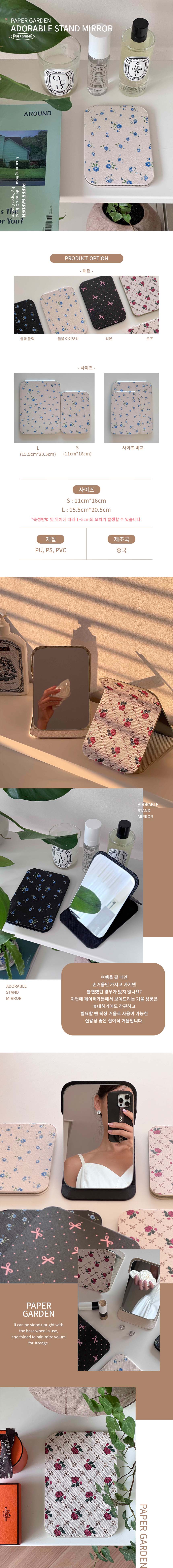 | - Product information - 페이퍼가든 어도러블 스탠드 미러를 소개합니다. 여행을 갈 때엔 손거울만 가지고 가기엔 불편했던 경우가 있지 않나요? 이번에 페이퍼가든에서 보여드리는 거울 상품은 휴대하기에도 간편하고 필요할 땐 탁상 거울로 사용이 가능한 실용성 좋은 접이식 거울입니다. 사용할 땐 받침으로 세워둘 수 있고, 보관할 때는 접어서 부피를 최소화 할 수 있습니다. 감성 가득한 프린팅과 두 가지의 사이즈로 각자의 취향에 맞춰 선택 가능합니다.  |