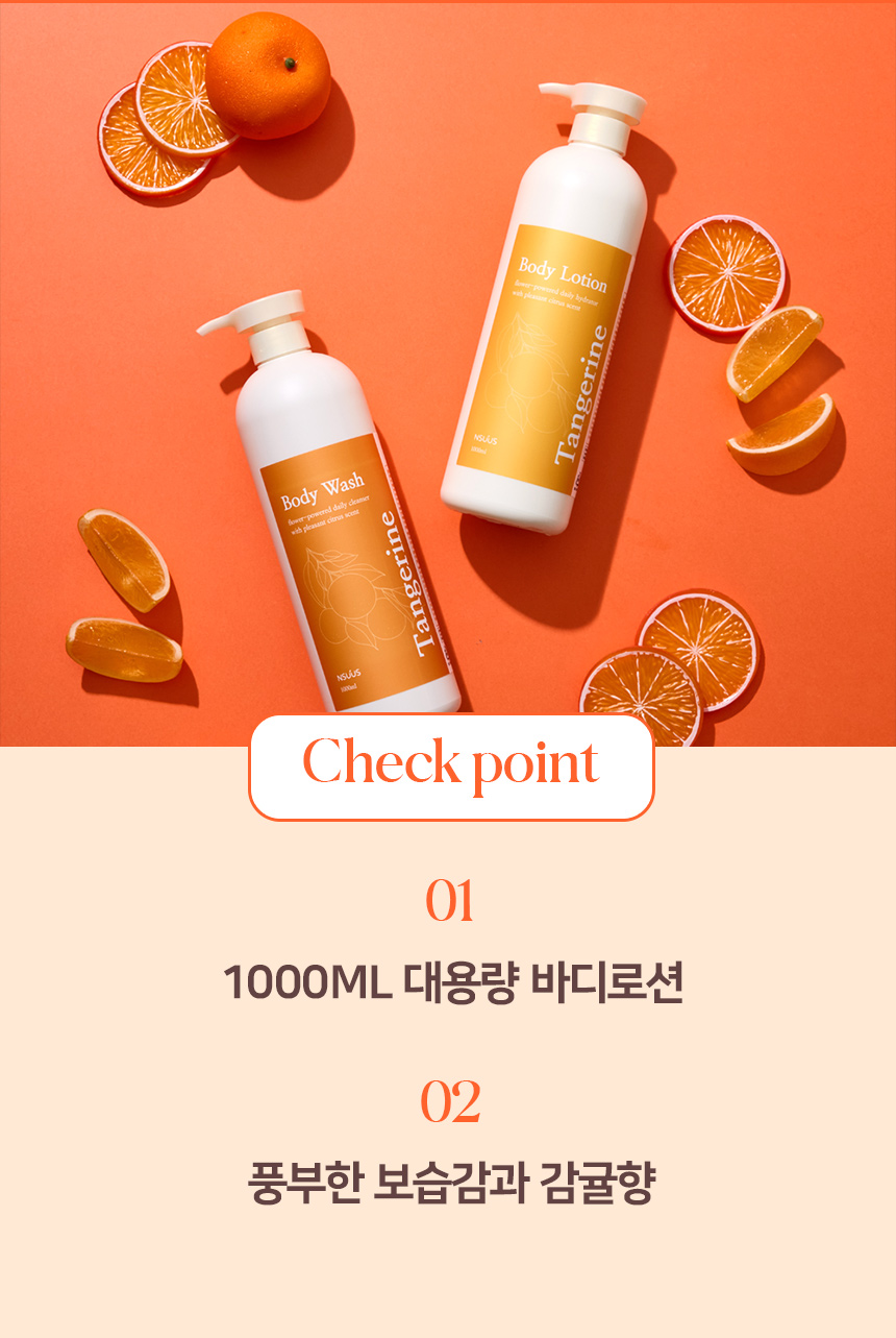 기분 좋은 감귤 향이 나는 발림성이 좋은 대용량 보습 바디로션입니다.