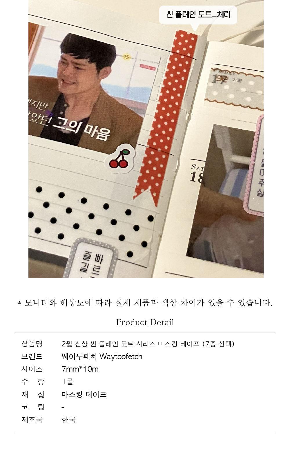 7mm의 폭으로, 자리 차지를 거의 하지 않으면서도 확실한 포인트가 되어주는 야무진 (?) 마스킹 테이프랍니다 ><
