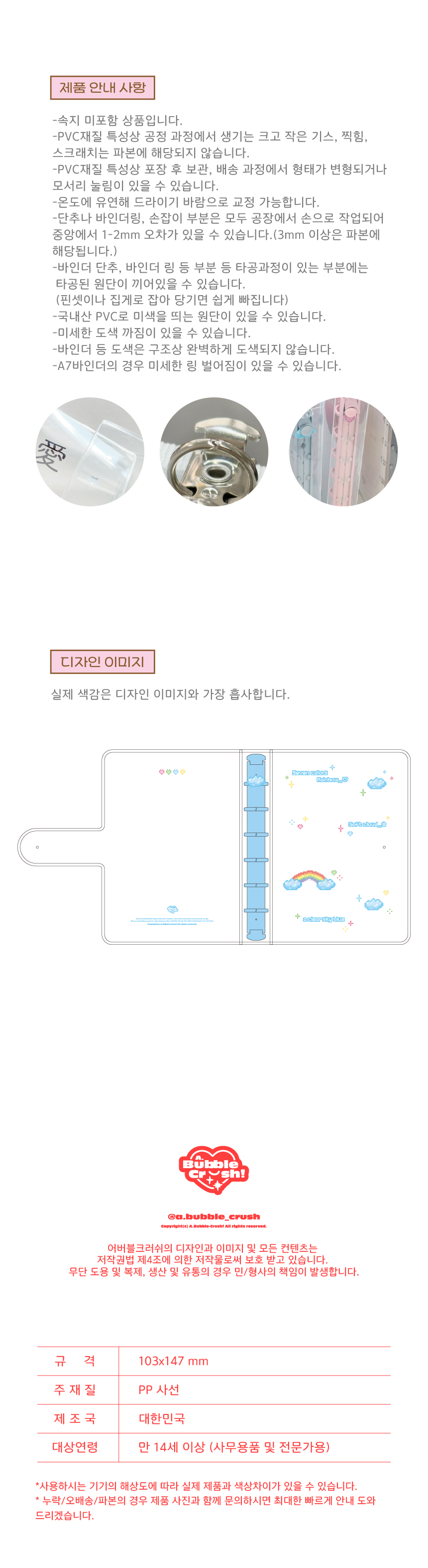*상세페이지는 바인더 단독제품으로 추후 수정예정입니다. 가장하단의 주의사항만 참고 부탁드립니다.