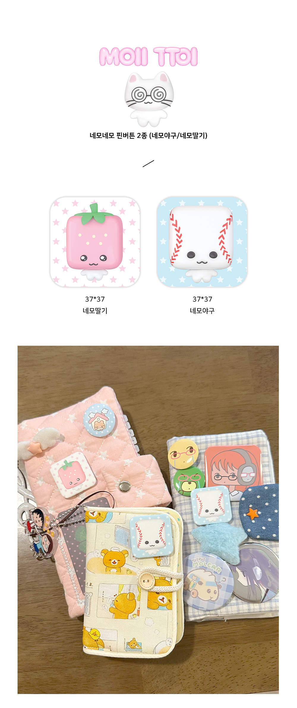 귀여운 동물,사물 친구들이 들어간 핀버튼 2종 입니다