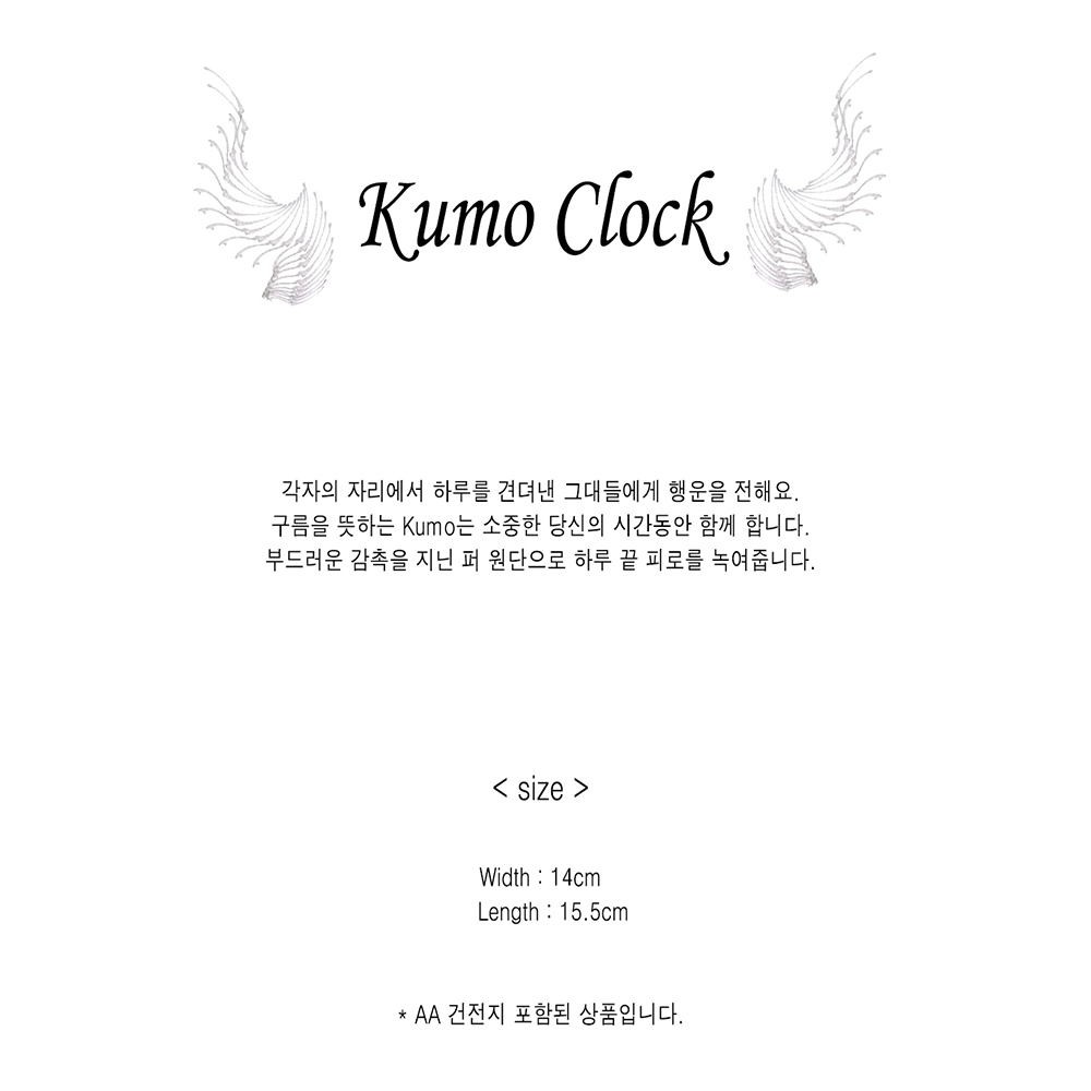 | 쿠모는 유년 시절의 결핍이 투영된 친구예요. 맞벌이 부모님의 외출로, 학교를 마치고 집에 돌아왔을 때 반겨주는 사람은 아무도 없었어요. 어린 아이는 혼자 밥을 챙겨 먹고, 인형과 놀며 외로움을 달래곤 했죠. 그 시절의 공허함은 성인이 된 지금, 쿠모라는 애착 인형으로 모습을 드러냈어요. 누군가의 결핍에 기대어, 함께 슬프게 울 수 있는 친구. 쿠모는 그렇게 애틋한 위로가 되어줍니다. 누군가의 마음 속 빈자리를 채워 줄 쿠모는 당신을 기다립니다. 각자의 자리에서 하루를 견뎌낸 그대들에게 행운을 전해요. 구름을 뜻하는 Kumo는 소중한 당신의 시간동안 함께 합니다. AA건전지 포함된 제품입니다. |