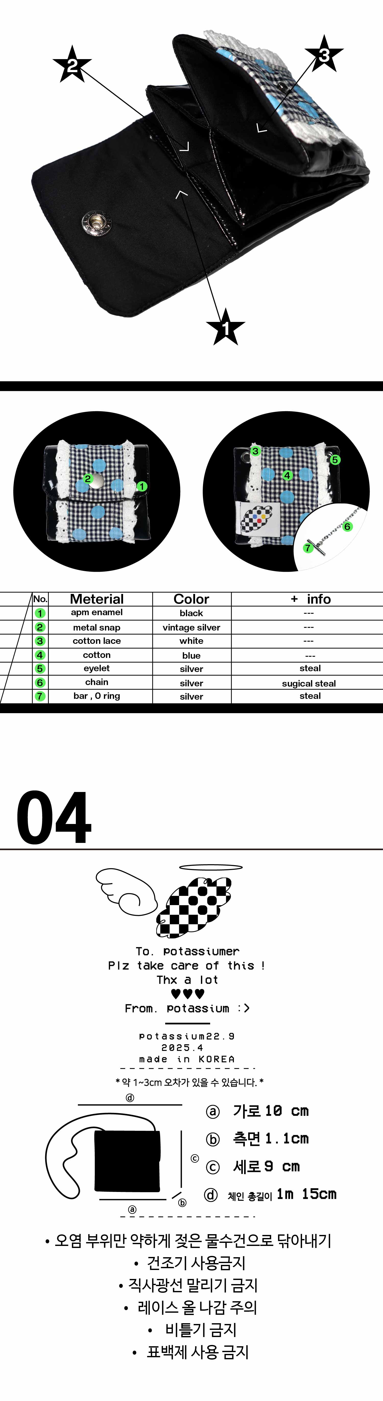 ▶ 블랙 에나멜과 레이스, 블루 도트가 조화!