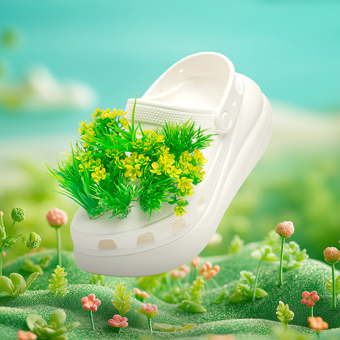 잔디 밭을 그대로 옮겨온 것만 같은 풀 모양의 핍 3개로 구성된 세트입니다. 신발 위에 싱그러운 초록빛 분위기를 더해보세요. *제품 이미지 컷은 세트 2개로 연출된 사진입니다.