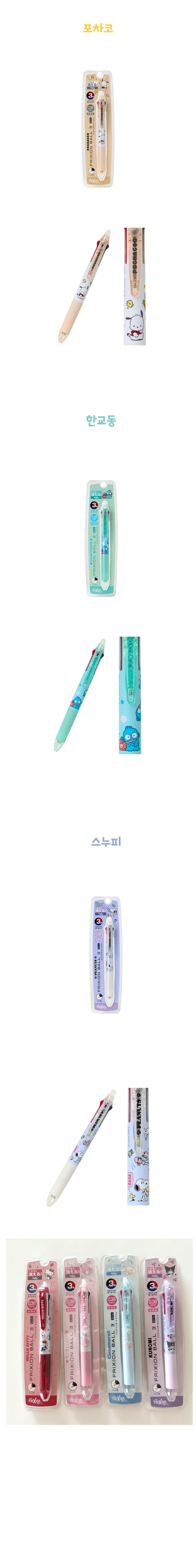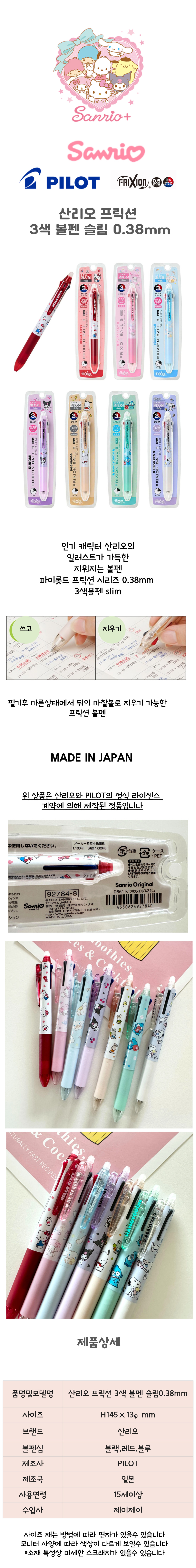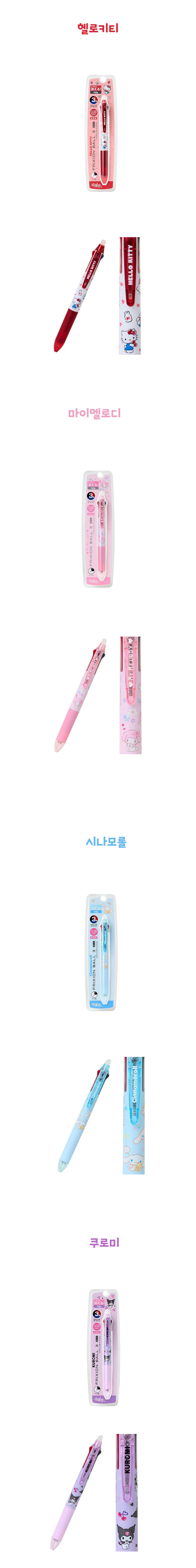 파이롯트 프릭션 지워지는 볼펜의 산리오 캐릭터 3색볼펜0.38mm