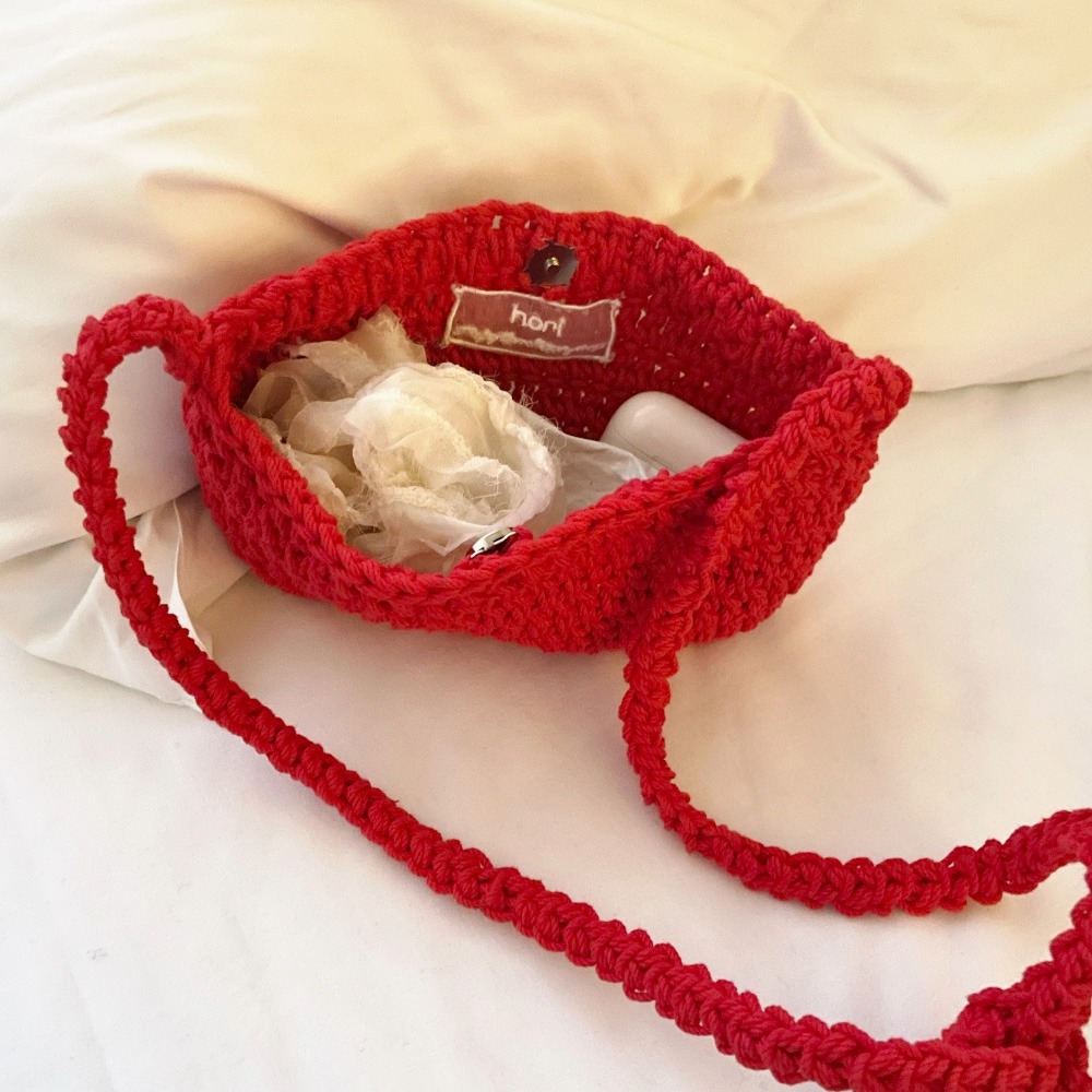 핸드메이드로 제작된 제품입니다. 미니 크로스 백으로, 작은 소지품(에어팟,립스틱,카드등)을 넣을 수 있고, 코튼 소재라 4계절 내내 사용하실 수 있어요.(끈을 묶어서 3way 사용 가능)