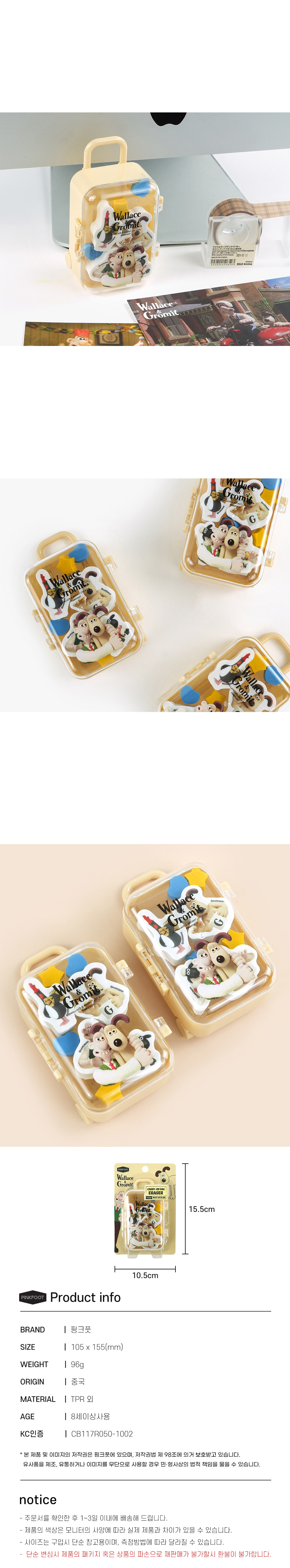 [공식정품]월레스와그로밋캐리어지우개세트