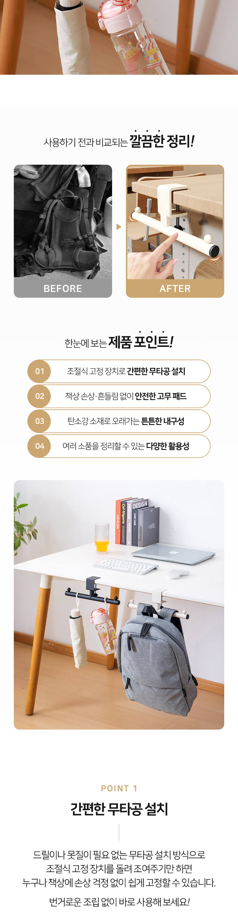 바닥에 두지 말고, 손 닿는 곳에 보관해 보세요!