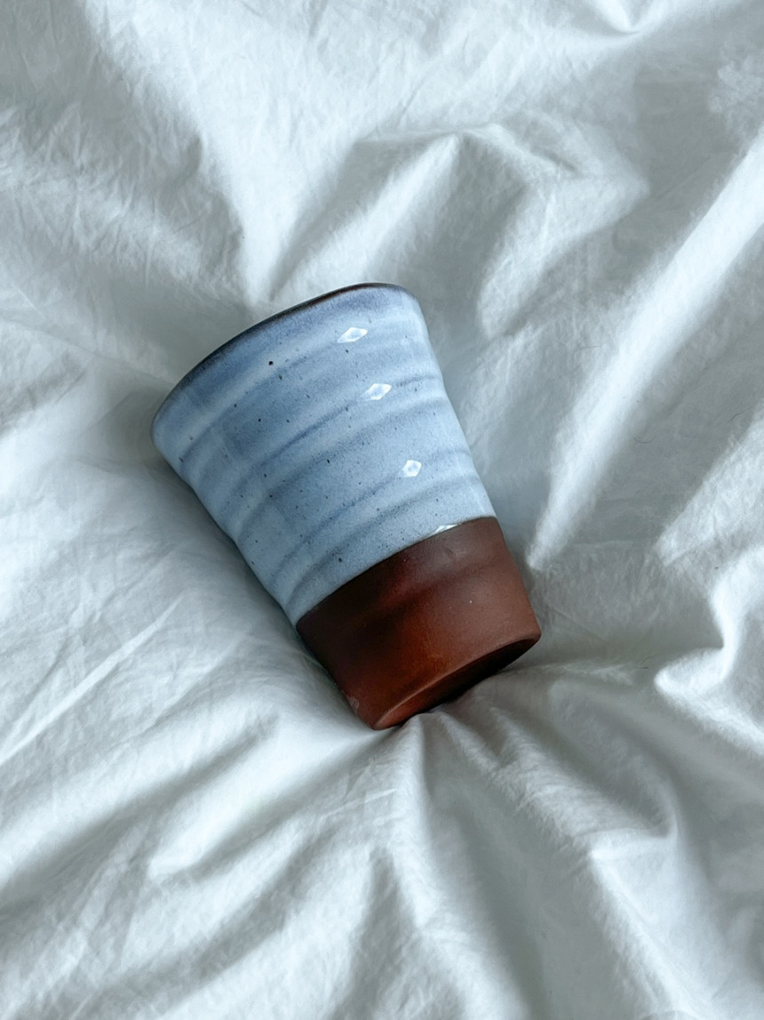 민트초코 컵 하늘색, 초코색의 배색조합이 예쁜 도자기 컵이에요.