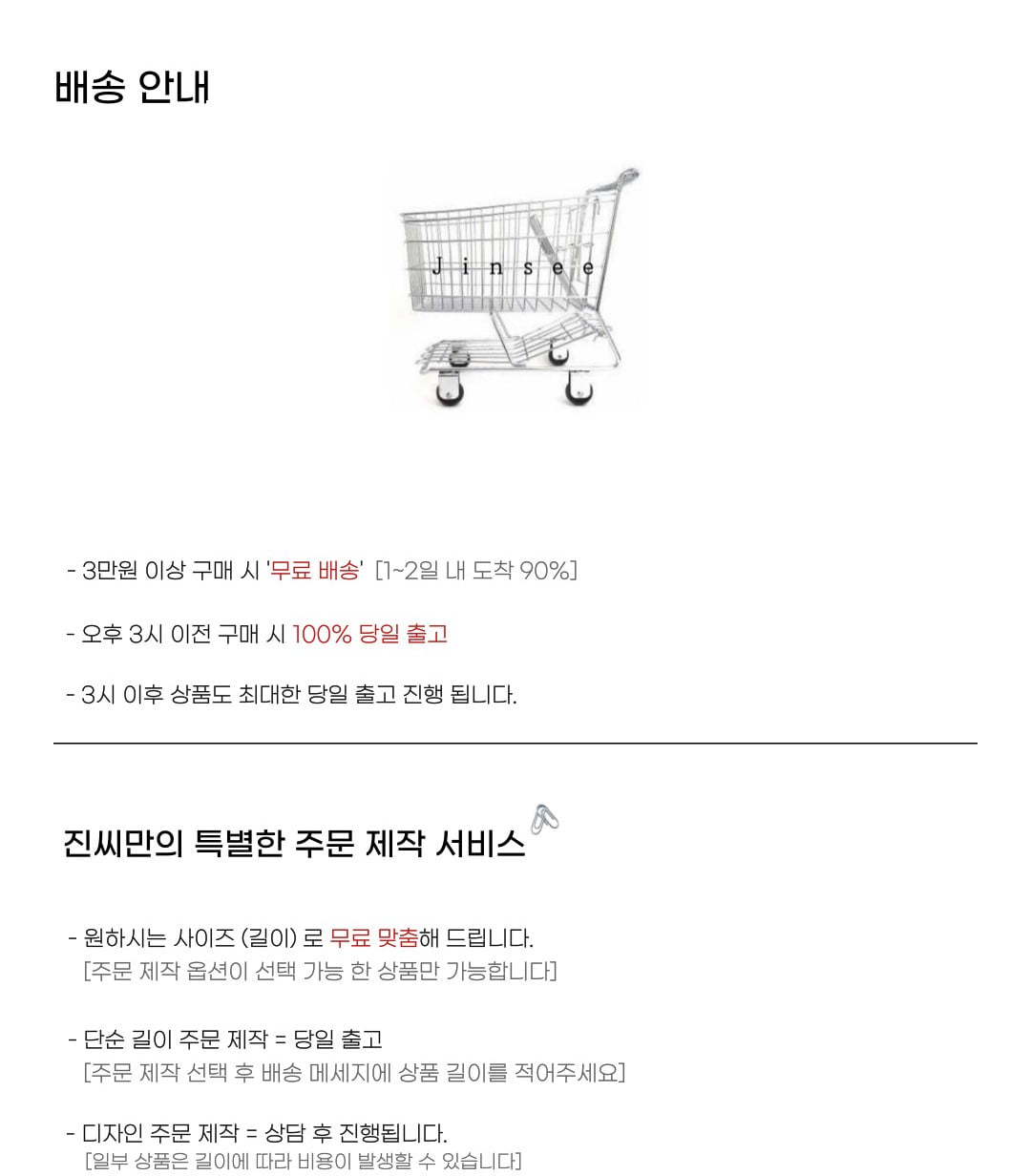 사이즈가 없거나, 맞춤 길이가 필요하실 경우