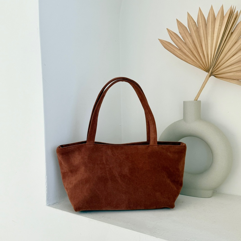 | 뉴이 모든 제품은 소량 제작으로 품절 시 판매 종료됩니다. 포근하고 따뜻한 느낌을 주는 카라멜, 브라운컬러의 스웨이드 토트백입니다. 미니멀한 디자인으로 멋스럽고 토트백 및 숄더백으로 다양하게 연출할 수 있는 콤팩트한 사이즈입니다. 자석 단추로 닫을 수 있고 탄탄한 안감을 덧대어 내구성을 살렸습니다. 크기에 비해 넉넉한 수납이 가능해서 가볍게 들고 다니기 좋은 데일리백입니다. Colors Caramel / Brown Size 가로 21cm 높이 14.5cm 폭 10cm 손잡이 16cm Fabric 겉감 폴리에스테르 100% 안감 폴리에스테르 100% 유의사항 □제품 안내 모든 제품은 수작업으로 제작되며, 수작업 특성상 제작 공정 중 발생할 수 있는 작은 실밥, 봉제선의 미세한 흔들림 등은 제품의 하자가 아닙니다. 제품의 색상은 모니터 및 환경에 따라 차이가 있을 수 있습니다. 측정 방법에 따라 1~3cm의 사이즈 차이가 있을 수 있습니다. □배송 안내 주문 후 제작되는 시스템으로 제작 기간은 휴일 제외 최대 5일까지 소요될 수 있습니다. 제주, 도서산간지역의 경우 추가 배송비가 부가됩니다. □세탁 안내 일반 중성세제를 이용하여 손세탁을 권장합니다. 건조기 사용은 원단의 변형 및 수축이 일어날 수 있어 권장하지 않습니다. □교환 반품 안내 섬유 유연제 및 향수 냄새를 포함하여 사용 흔적이 있는 경우 교환 환불이 불가합니다. 세탁 부주의로 인한 변형 시 교환/환불이 불가합니다. |