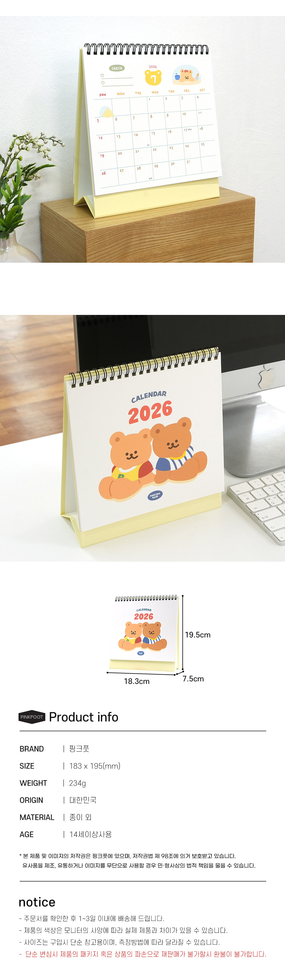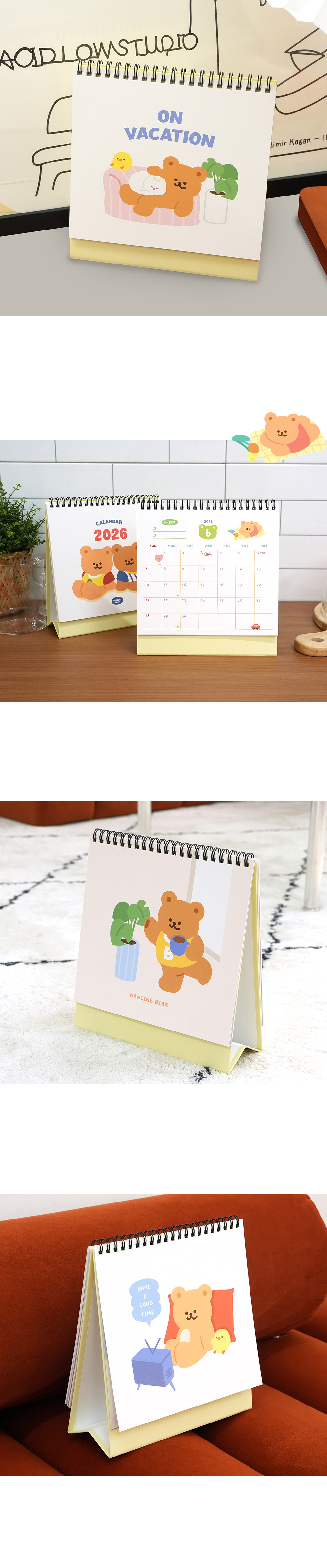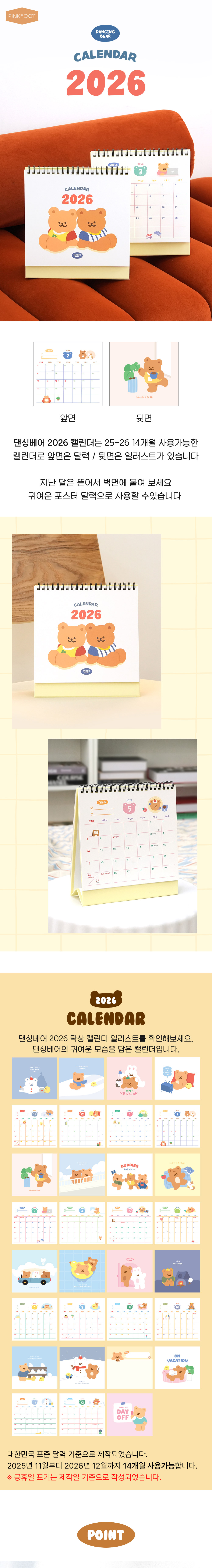 핑크풋 [날짜형] 2026댄싱베어탁상캘린더