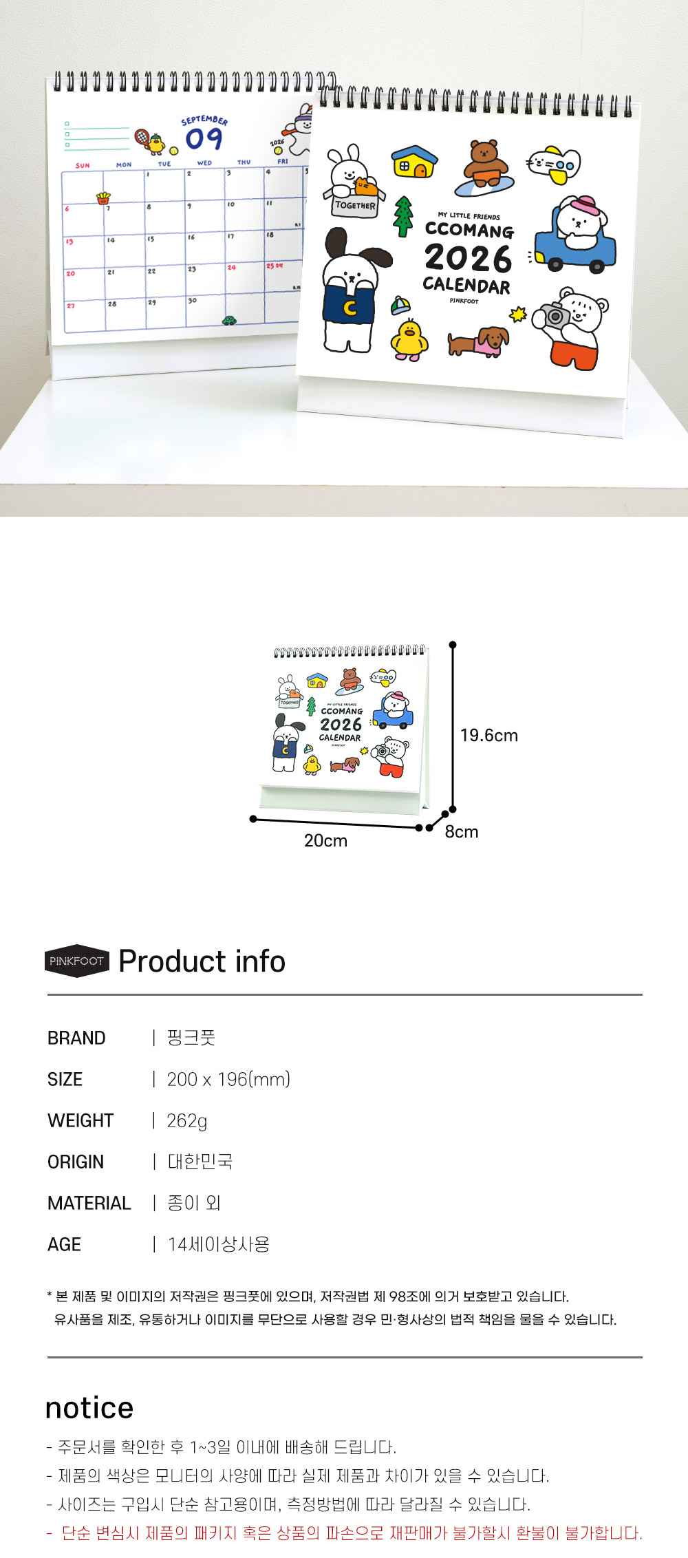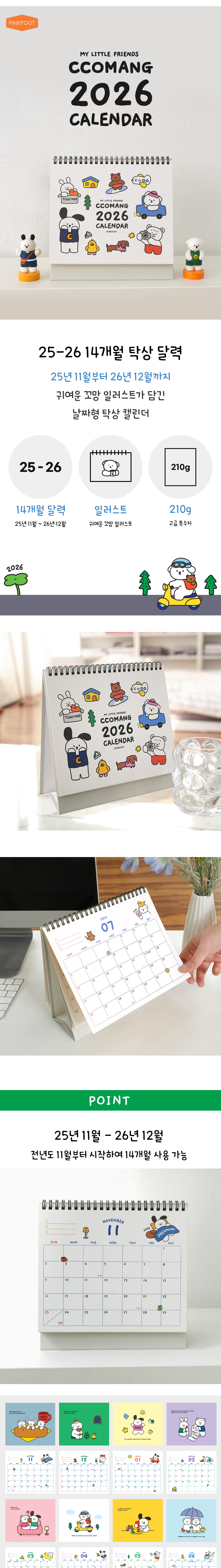 핑크풋 [날짜형] 2026꼬망탁상캘린더