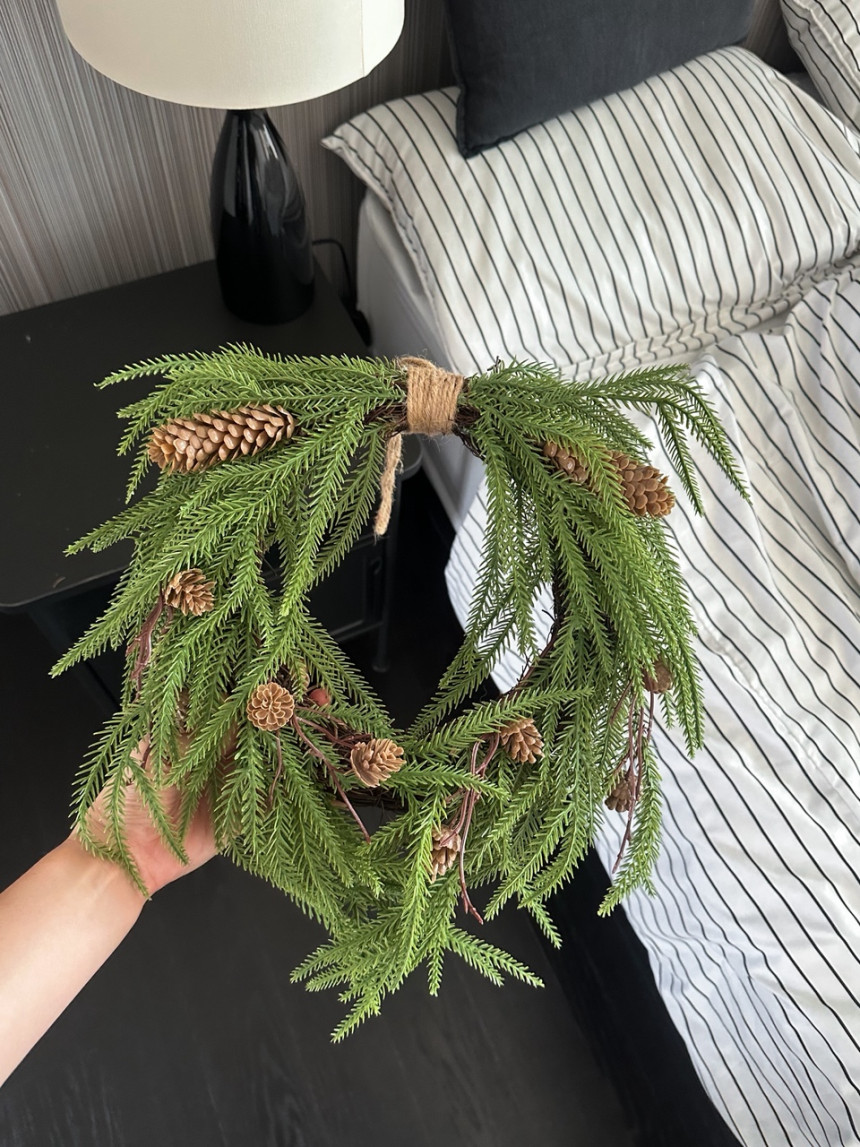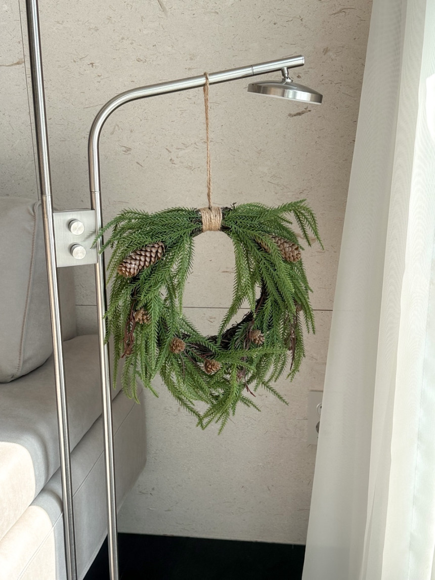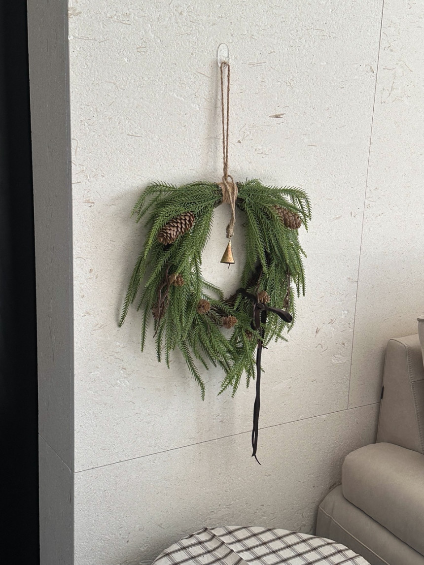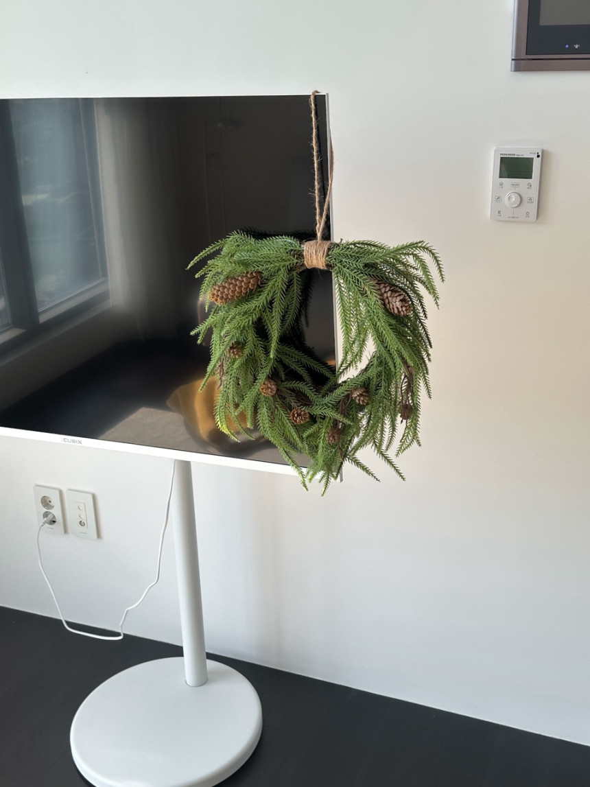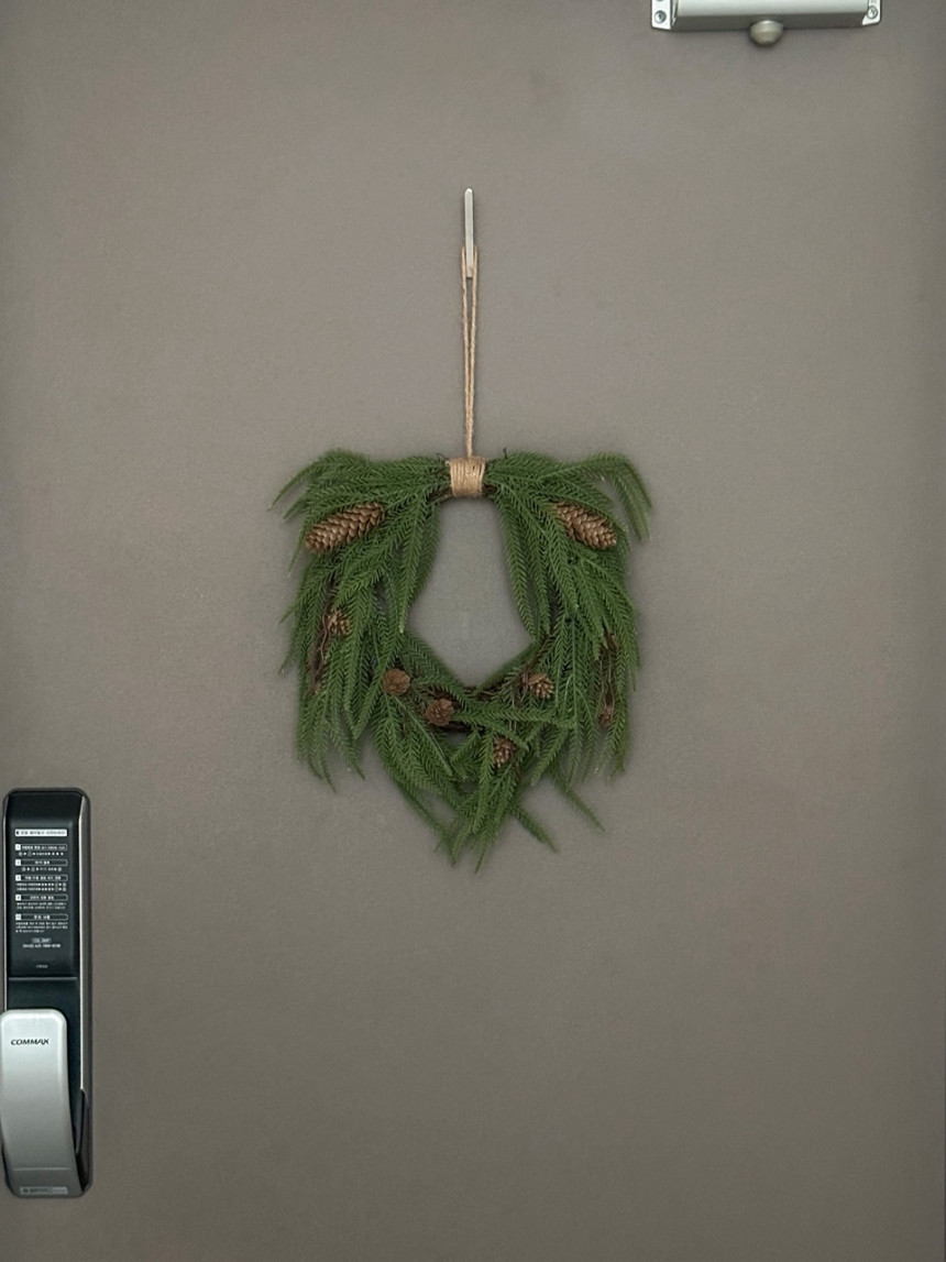 크리스마스 시즌 거래처 인기 상품입니다. 솔방울 장식이 포함되어 있어 별도의 오너먼트 없이도 완성형 리스로 연출 가능해요. 제품은 개별 상자 포장으로 출고되어 깔끔하게 보관할수 있어 추천드립니다:) size 40cm×45cm