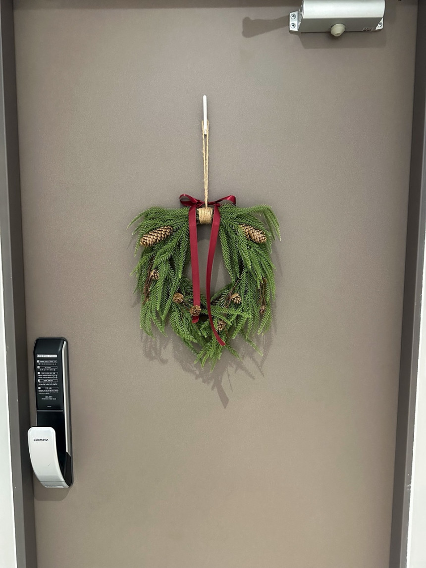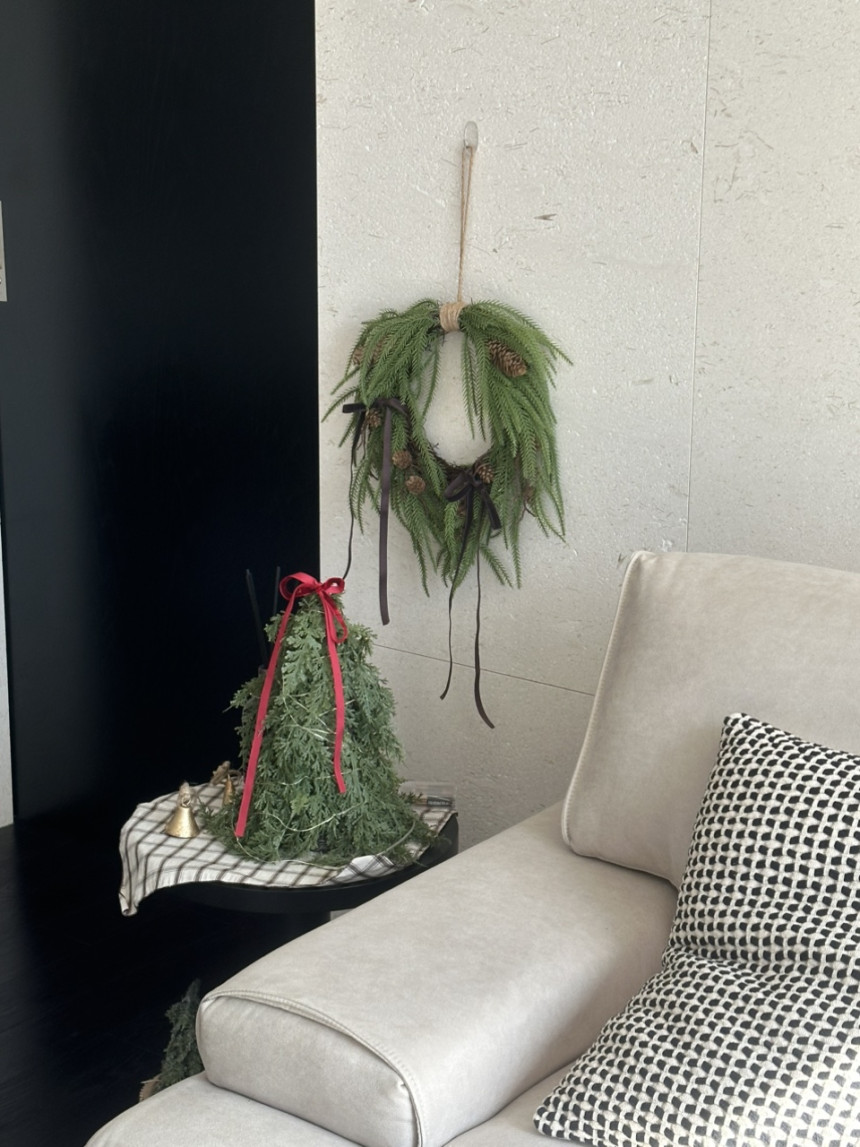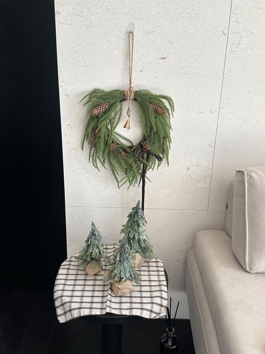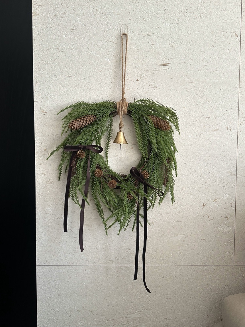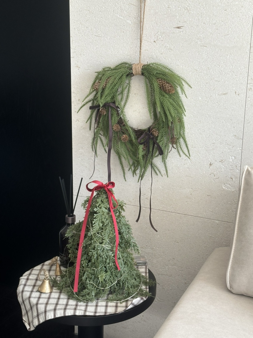 크리스마스 시즌 거래처 인기 상품입니다. 솔방울 장식이 포함되어 있어 별도의 오너먼트 없이도 완성형 리스로 연출 가능해요. 제품은 개별 상자 포장으로 출고되어 깔끔하게 보관할수 있어 추천드립니다:) size 40cm×45cm