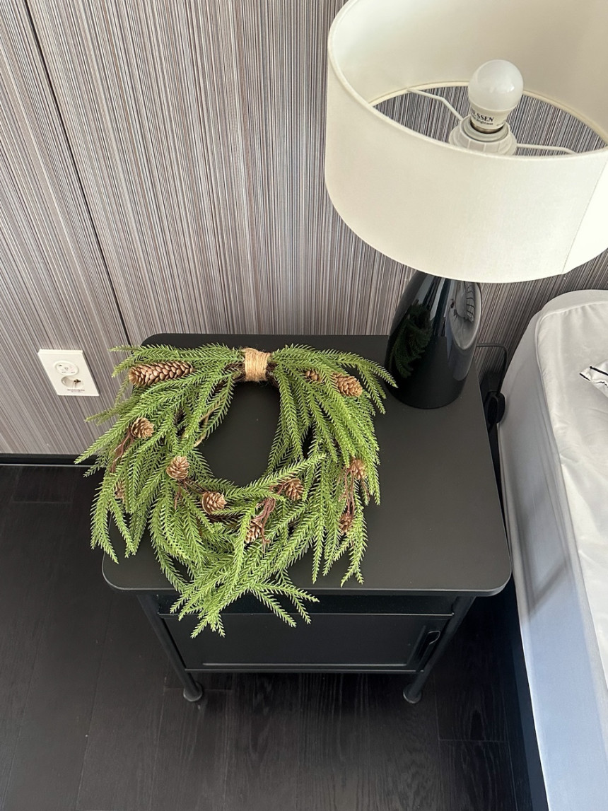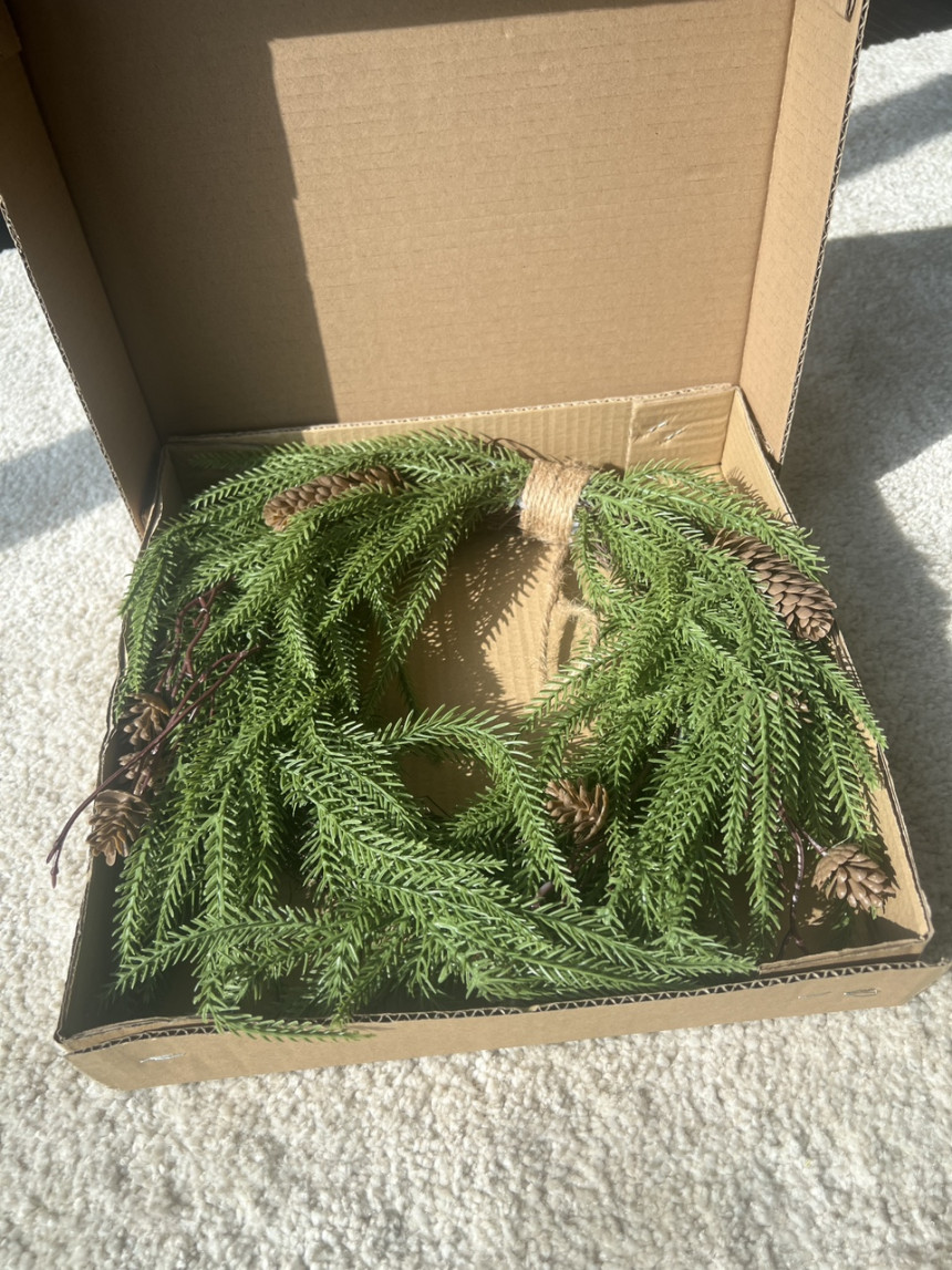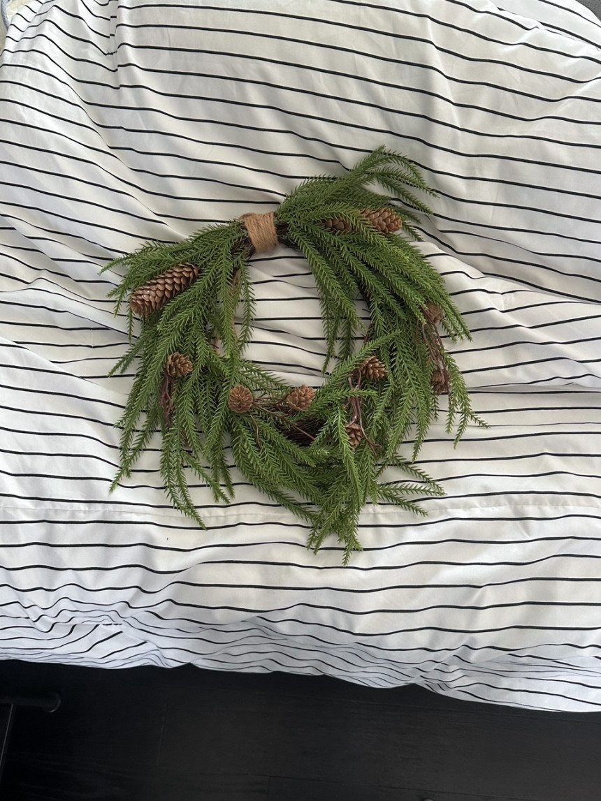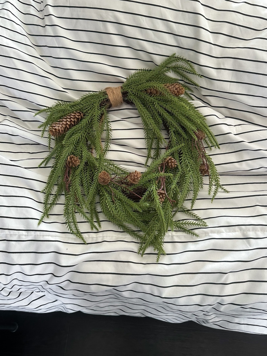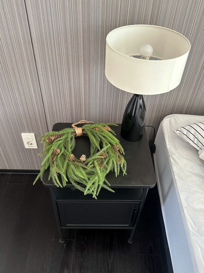 크리스마스 시즌 거래처 인기 상품입니다. 솔방울 장식이 포함되어 있어 별도의 오너먼트 없이도 완성형 리스로 연출 가능해요. 제품은 개별 상자 포장으로 출고되어 깔끔하게 보관할수 있어 추천드립니다:) size 40cm×45cm
