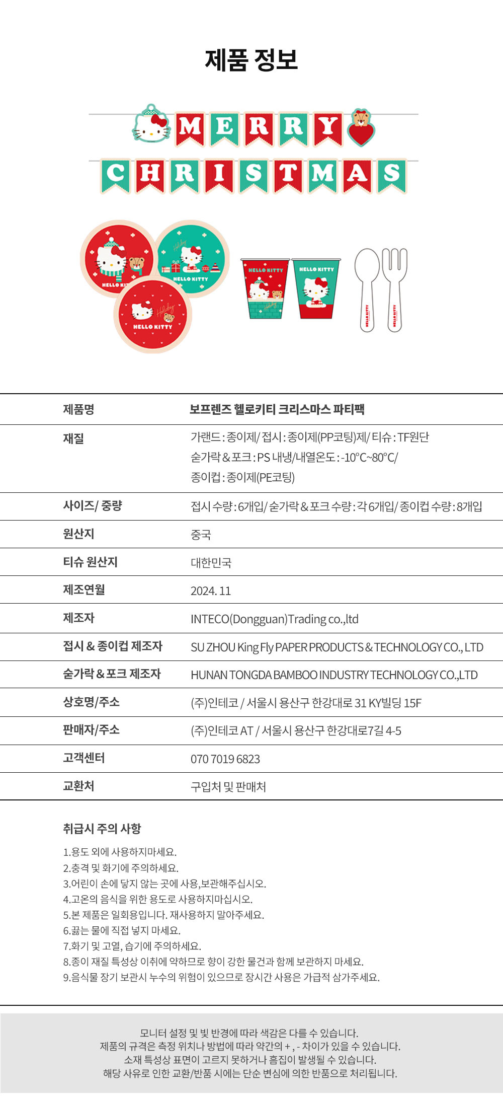 [보프렌즈] 산리오 헬로키티 크리스마스 파티팩 일회용 접시 원형 접시 홈파티