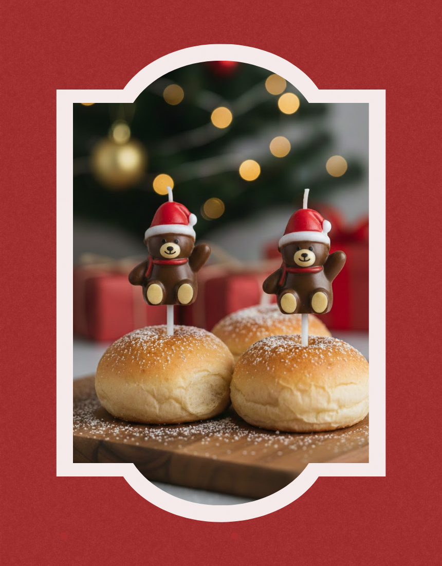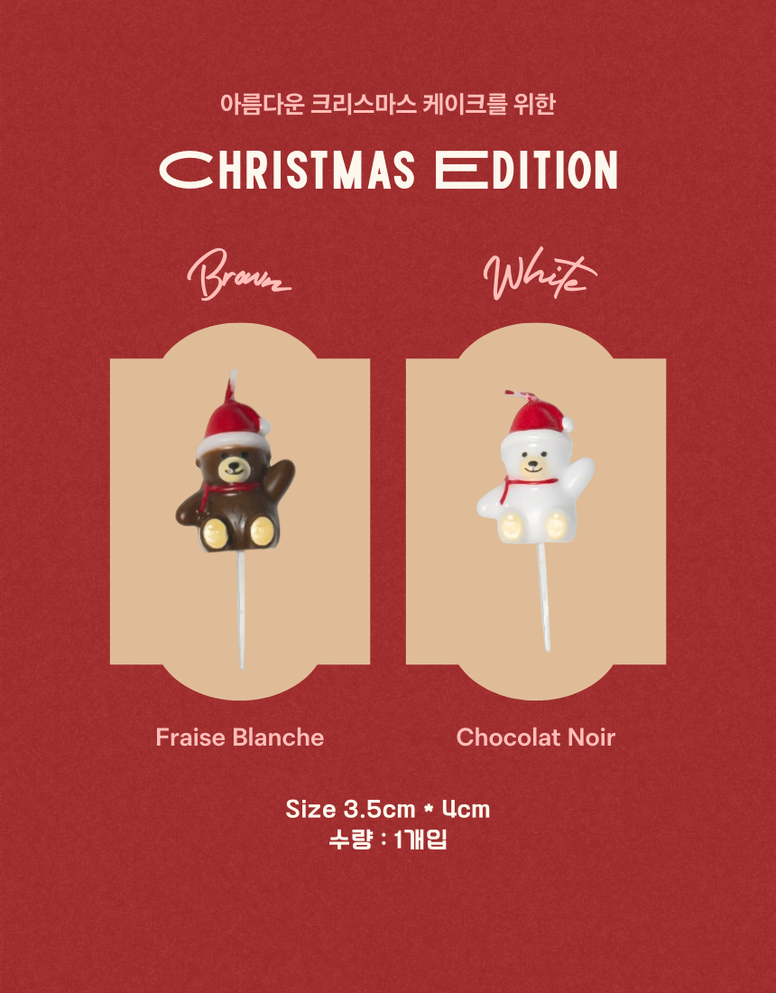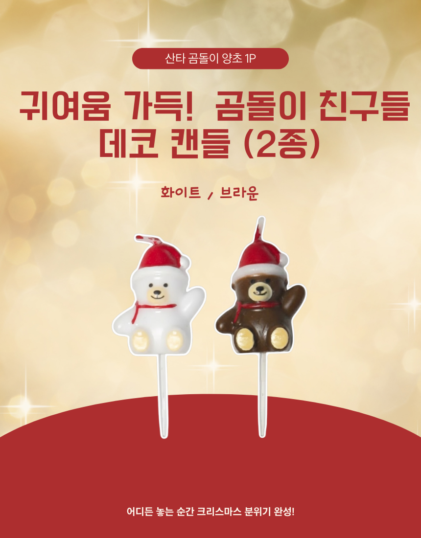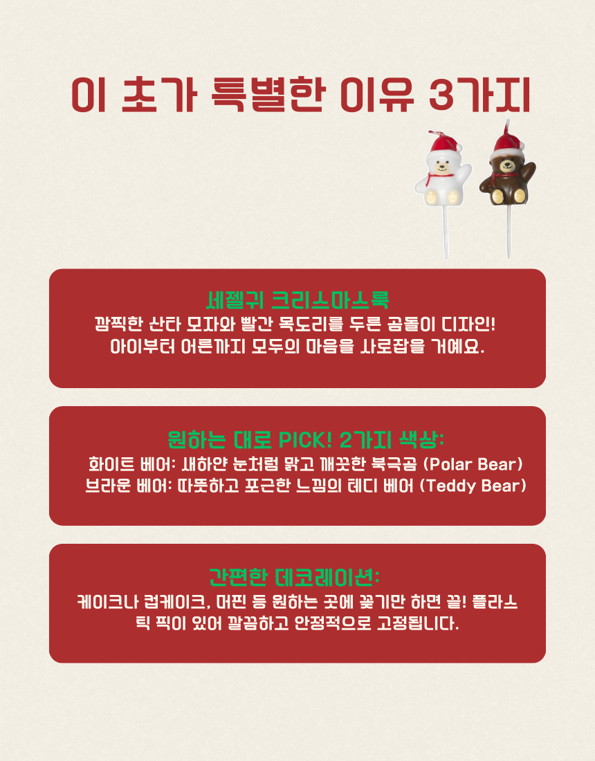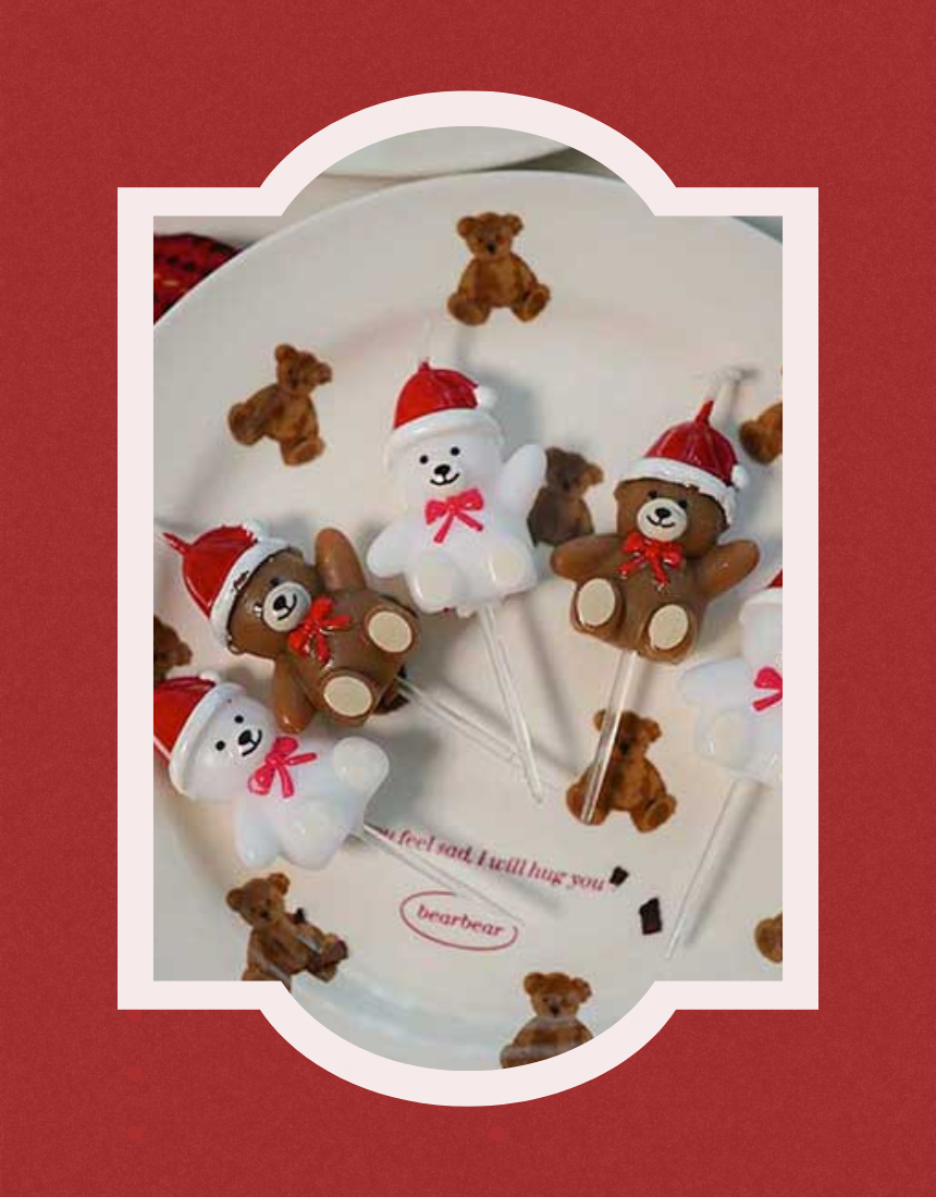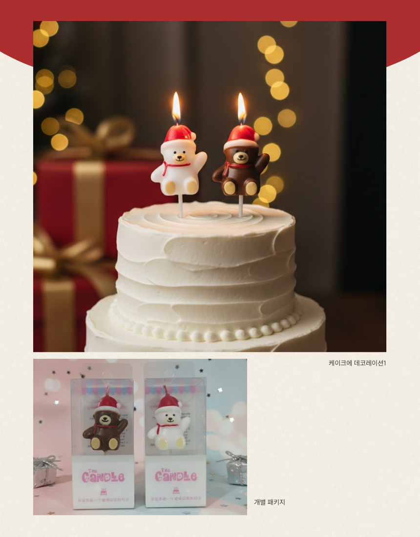 산타 모자를 쓴 통통이 곰돌이 양초 세트