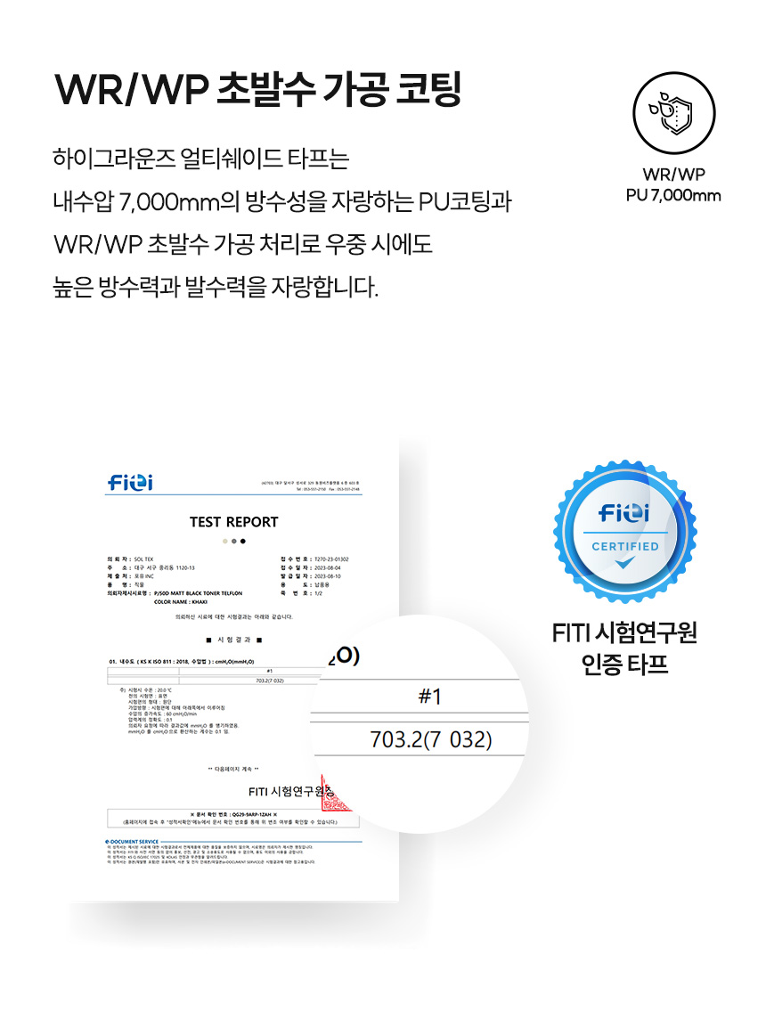 7,000mm의 방수력과 자외선을 완벽하게 차단하는