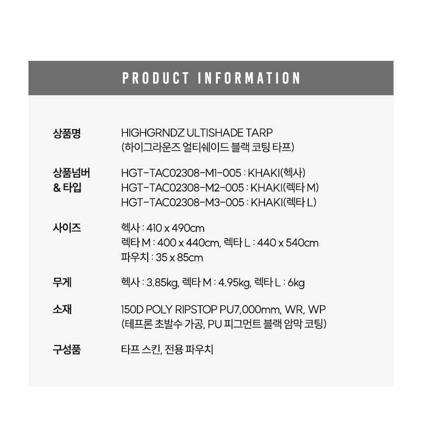 하이그라운즈얼티쉐이드 블랙 코팅 타프