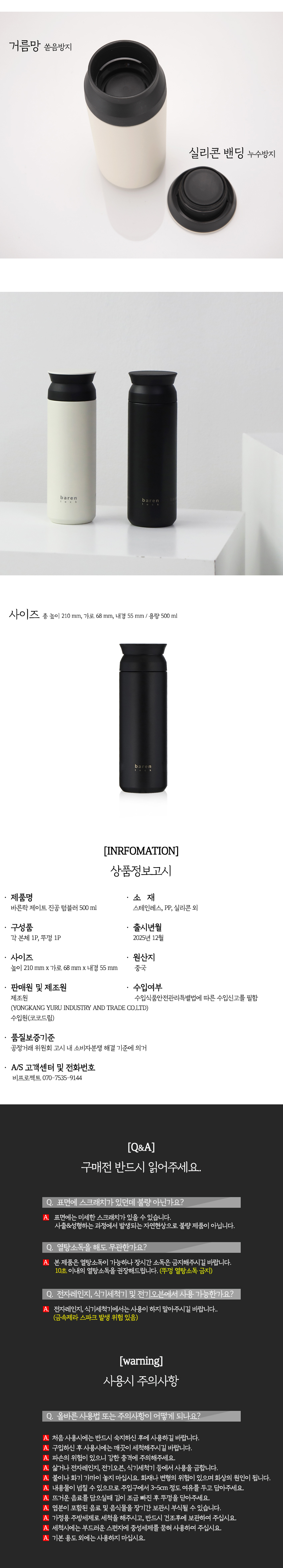 바른락 제이트 진공 텀블러 500ml