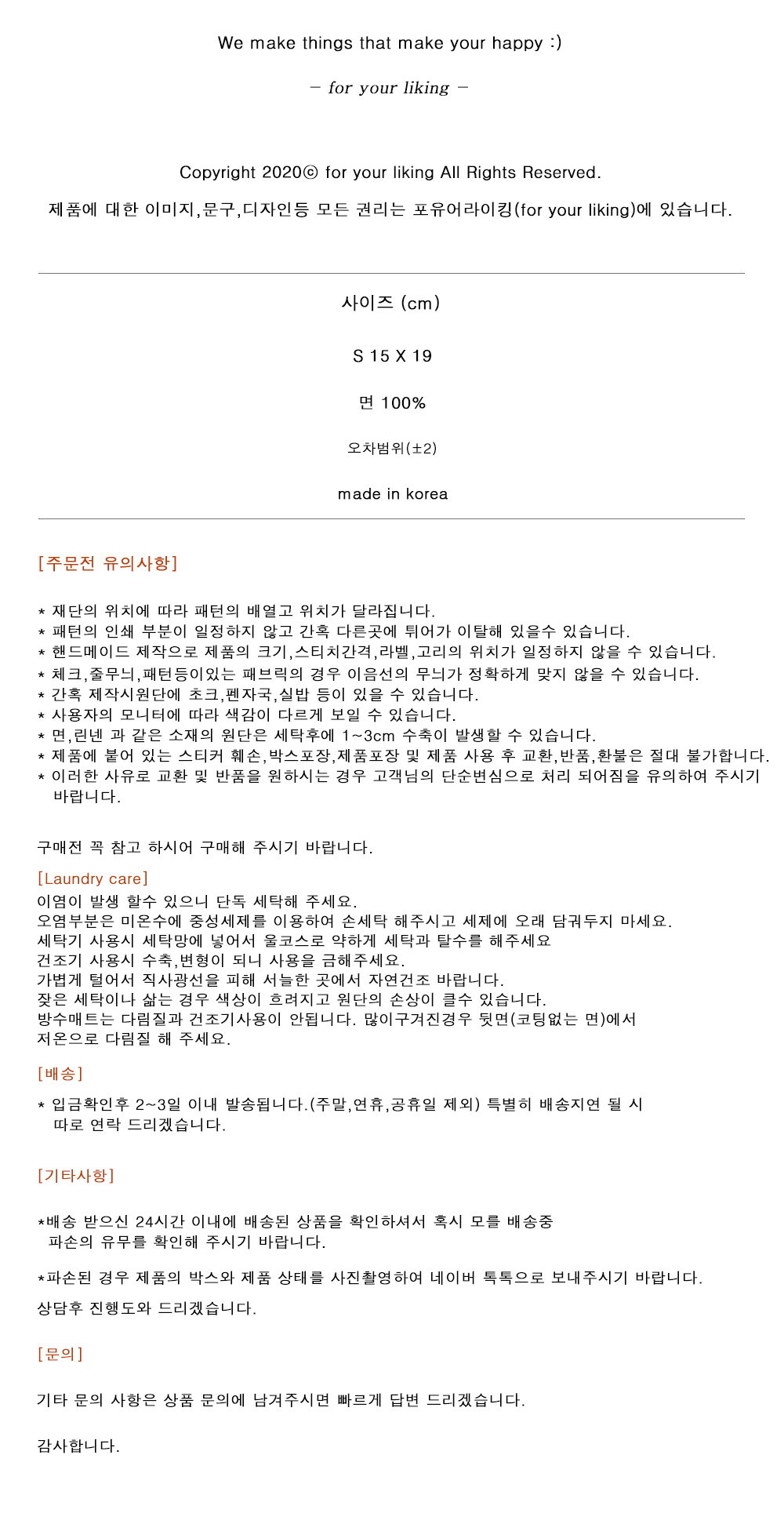 자체제작하는 디자인 브랜드 for your liking 입니다 :)