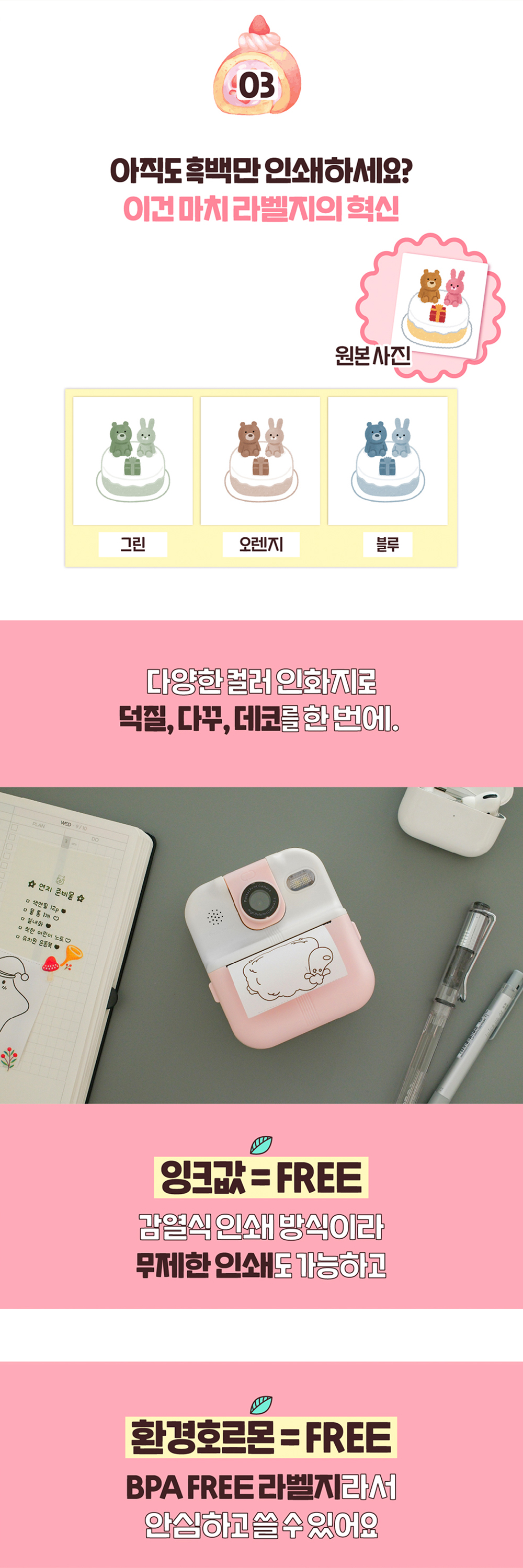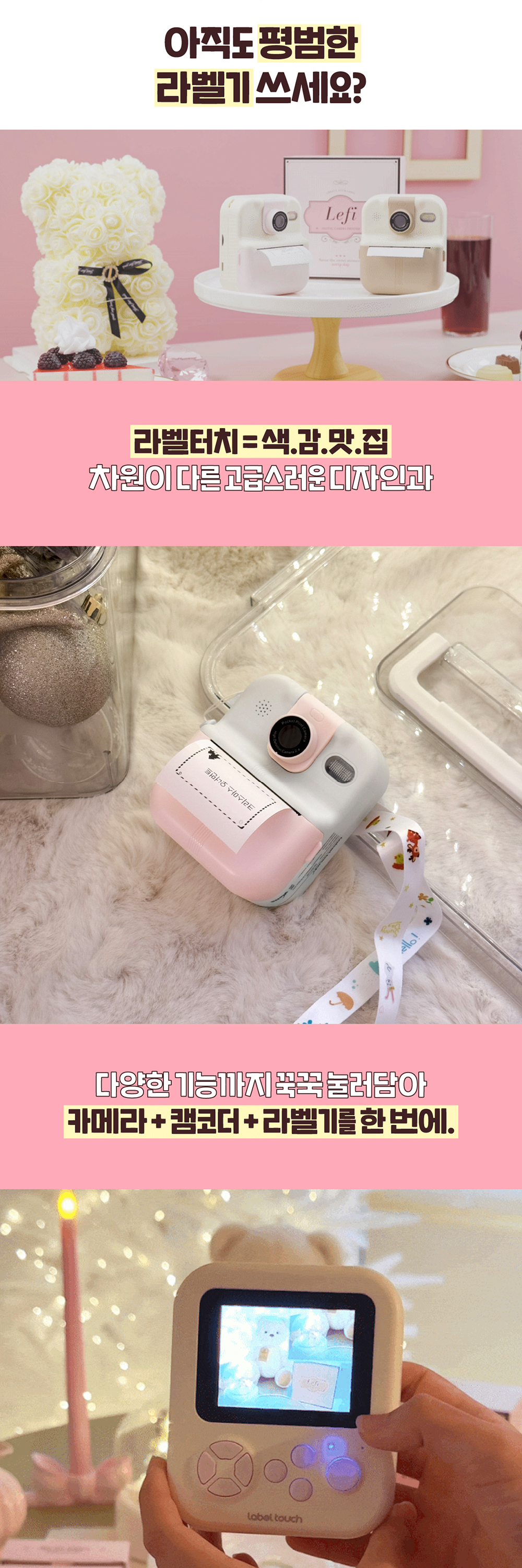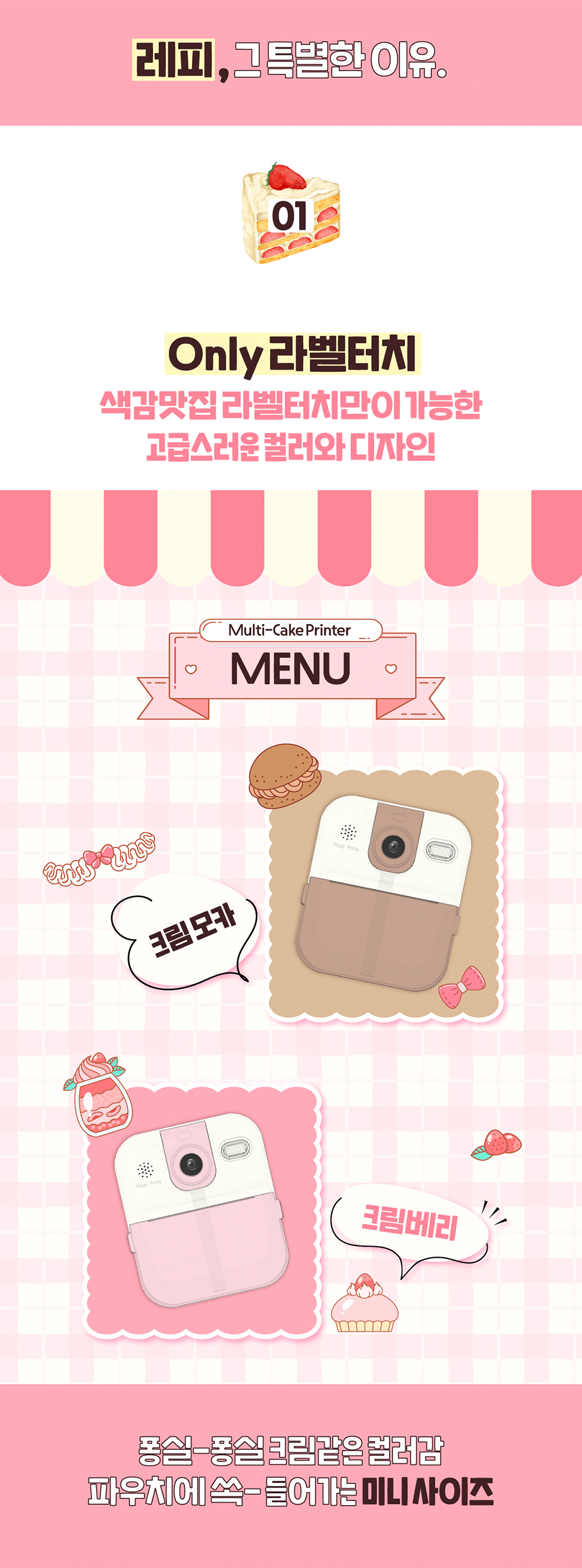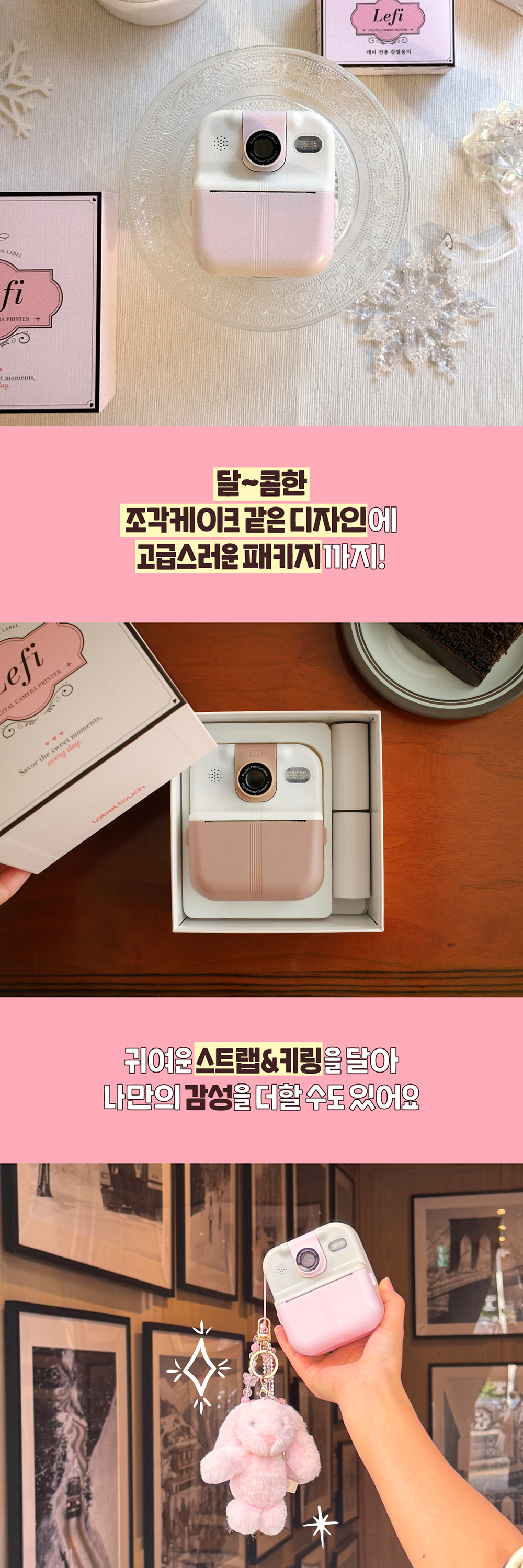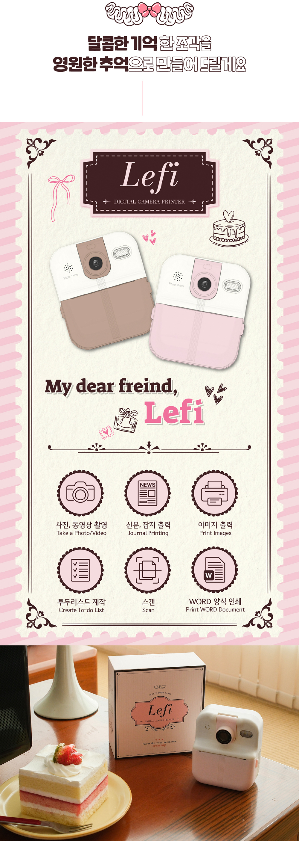 카메라/동영상을 촬영하고 출력까지 겸비한 달콤한 케이크가 생각나는 '크림 베리', '크림 모카' 컬러를 담은 카메라 라벨프린터 'Lefi'