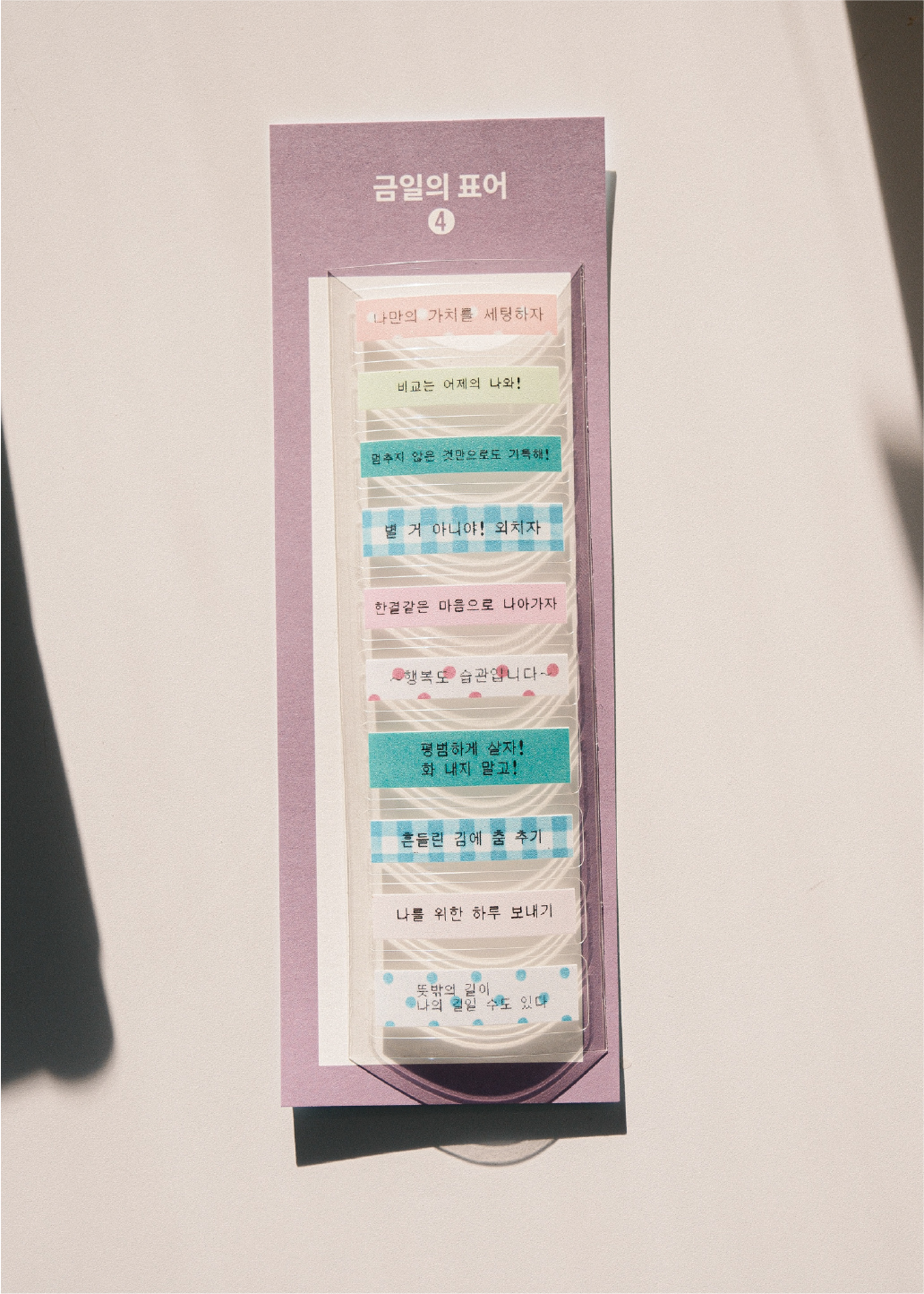 오늘을 어떻게 보내면 좋을지, 어떤 사람이 되고 싶은지, 어떤 하루를 만들고 싶은지 고민하면서요!