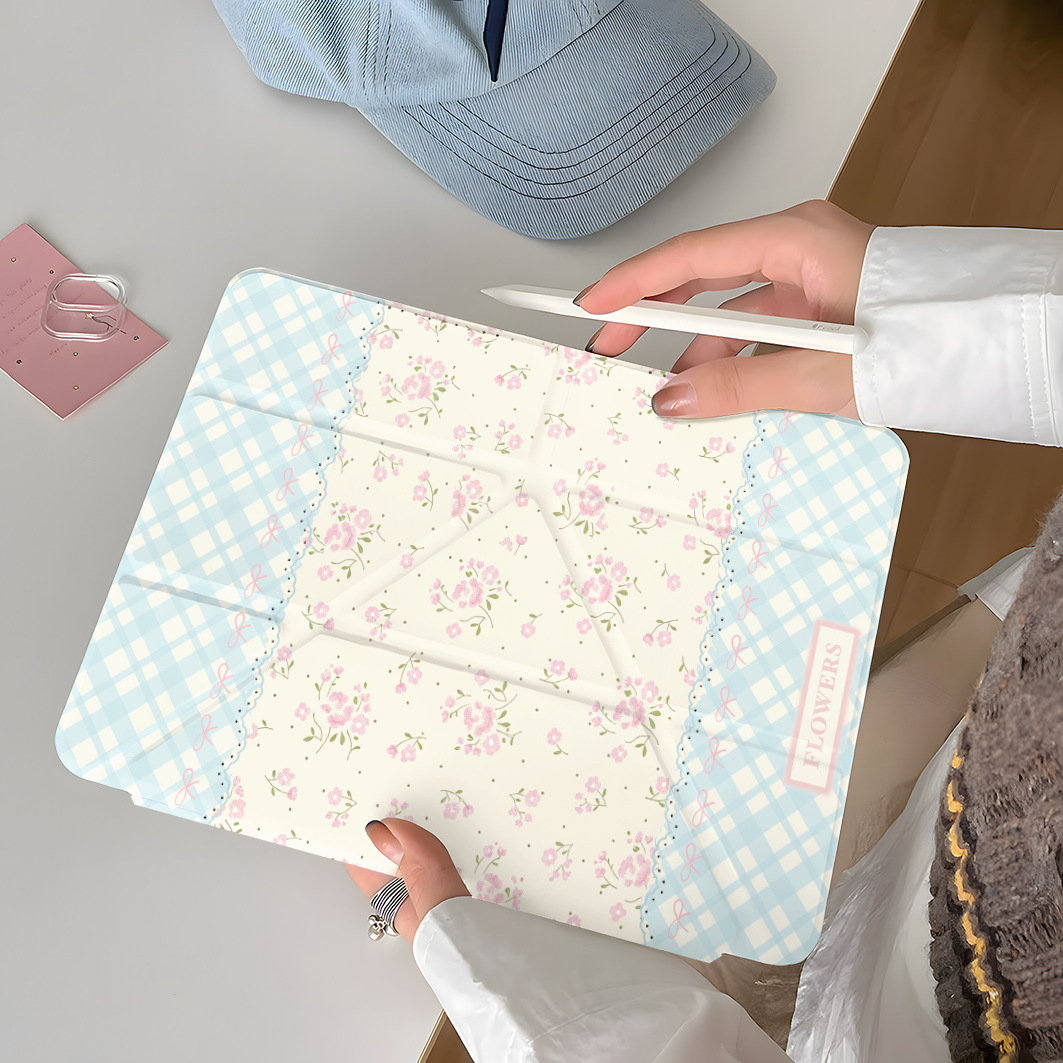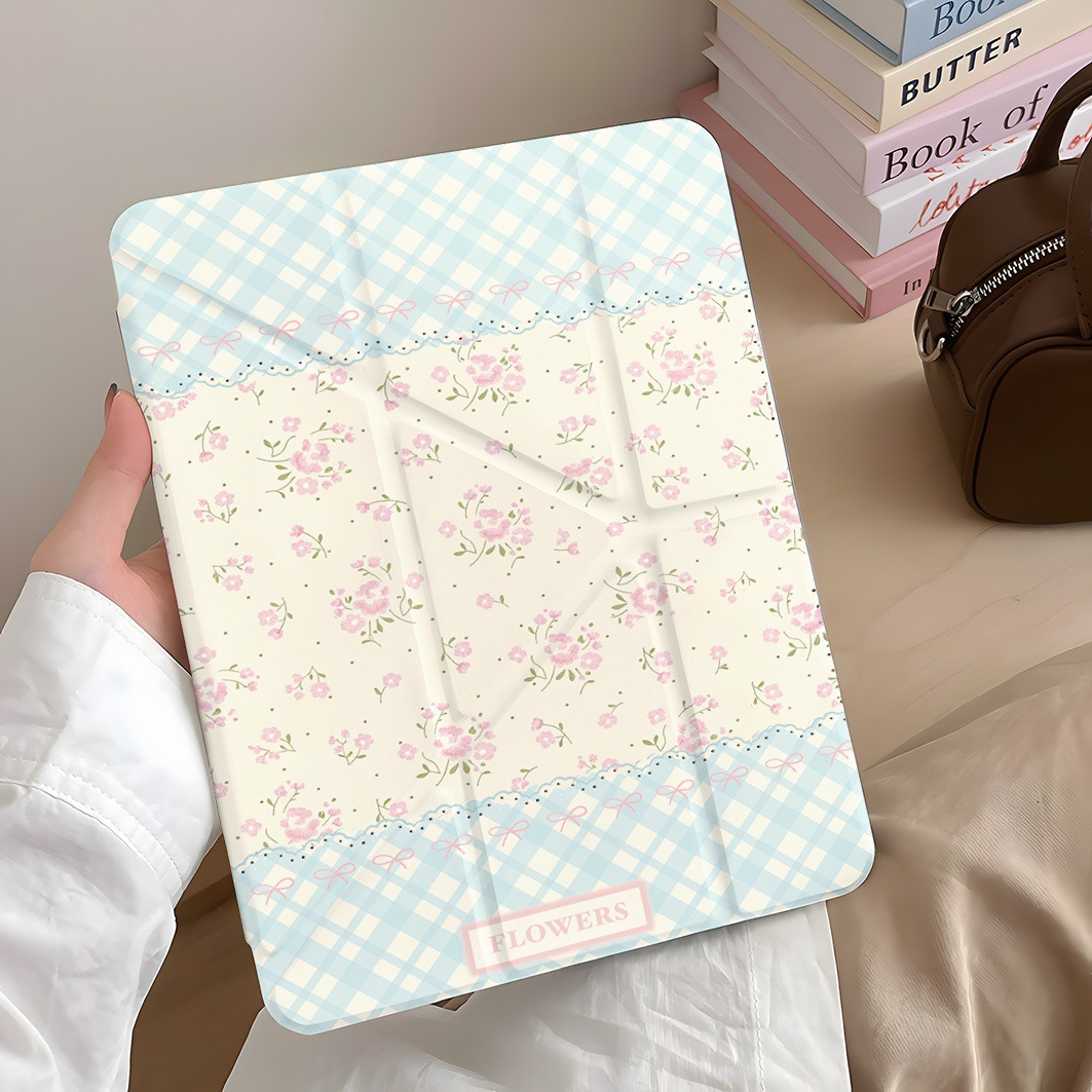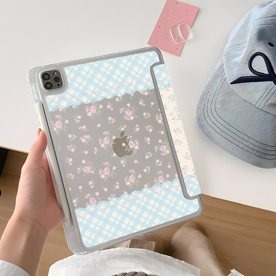 플라워 블루체크 아이패드 케이스